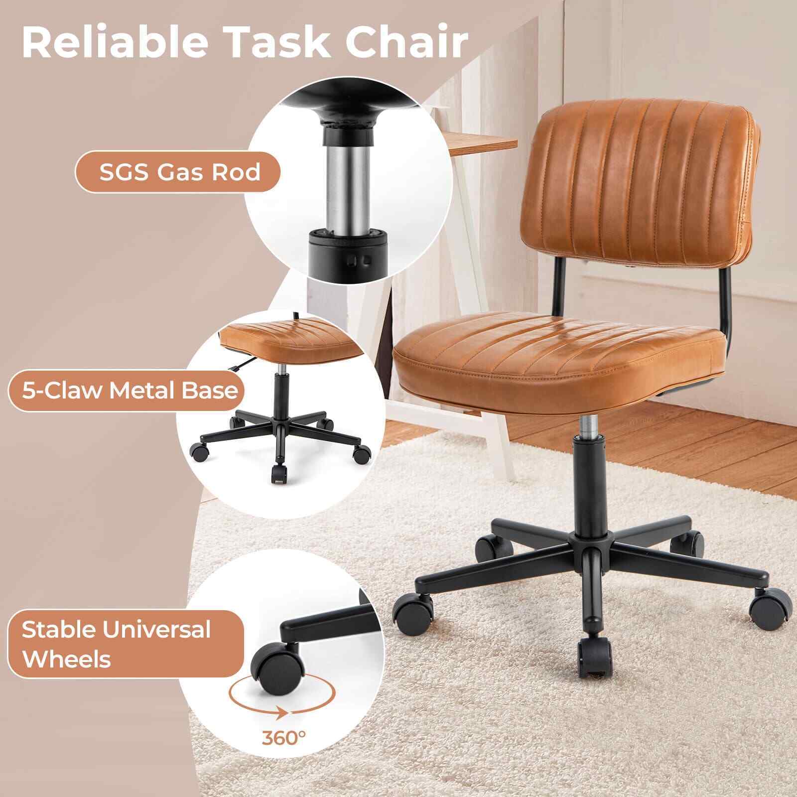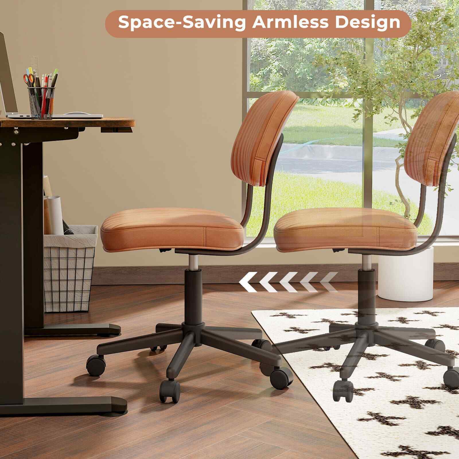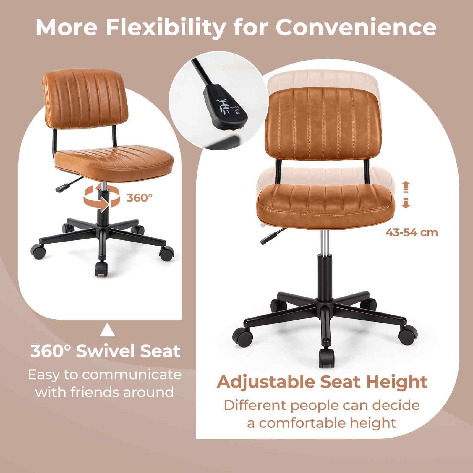 Adjustable PU Leather Office Chair Mobile Desk Chair Swivel Leisure Chair-Orange