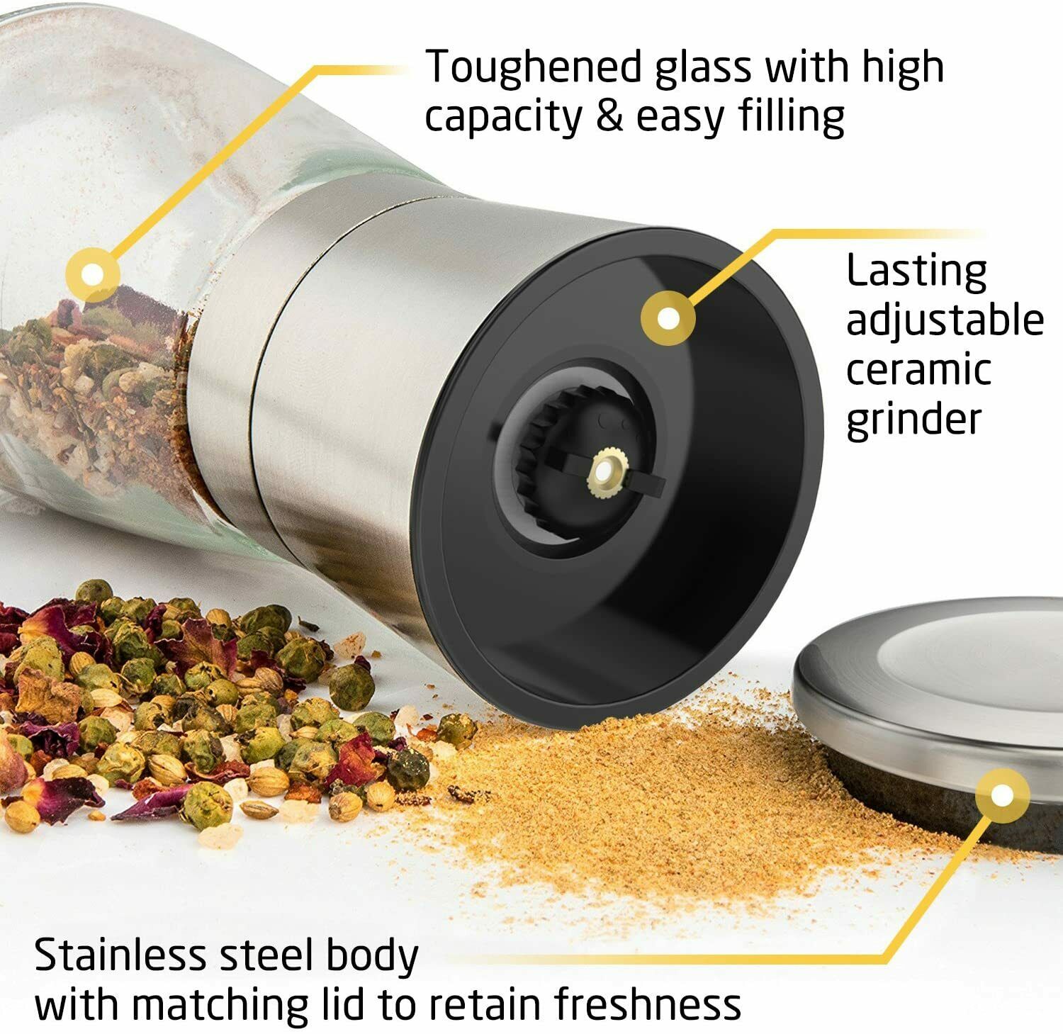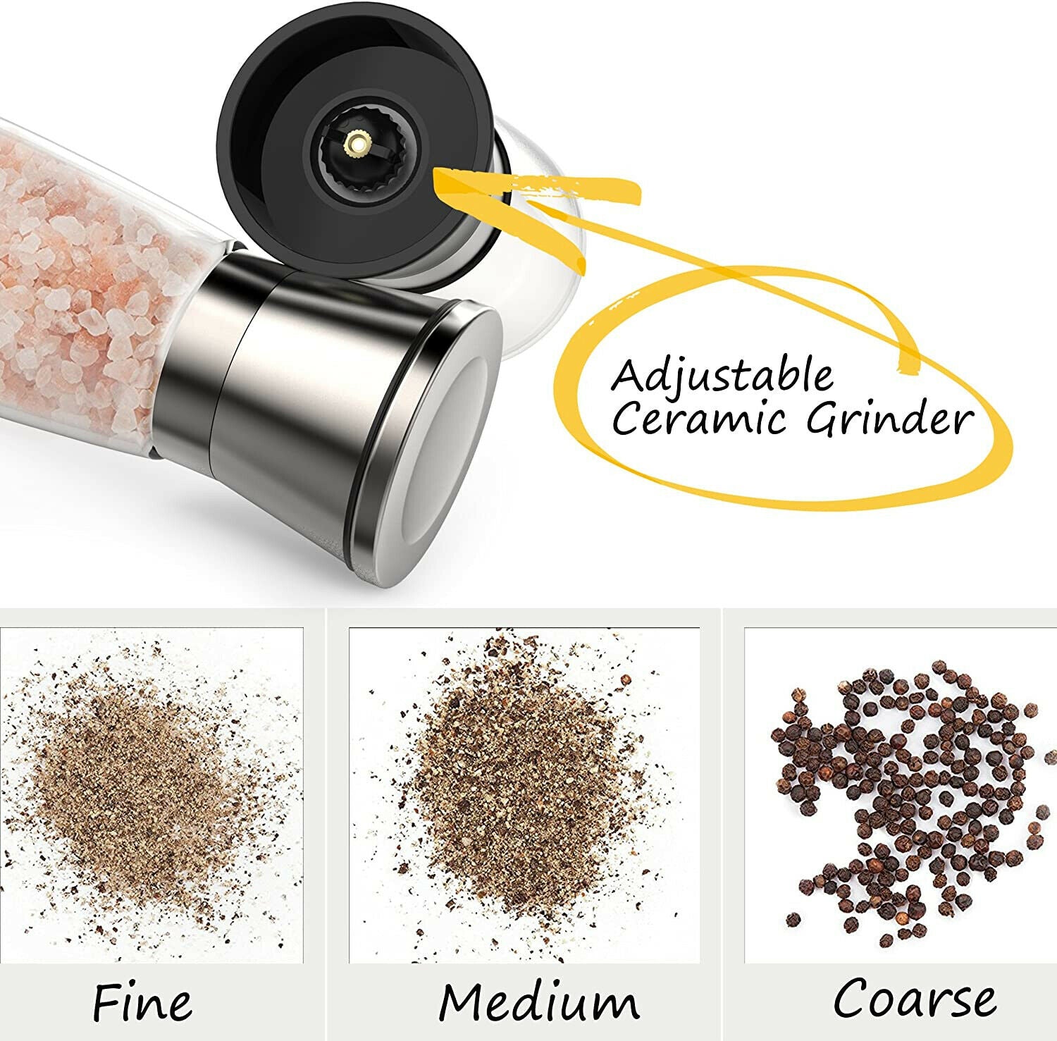 Adjustable Salt & Pepper Grinder Set Stainless Steel Glass Mill Coarse Grinding