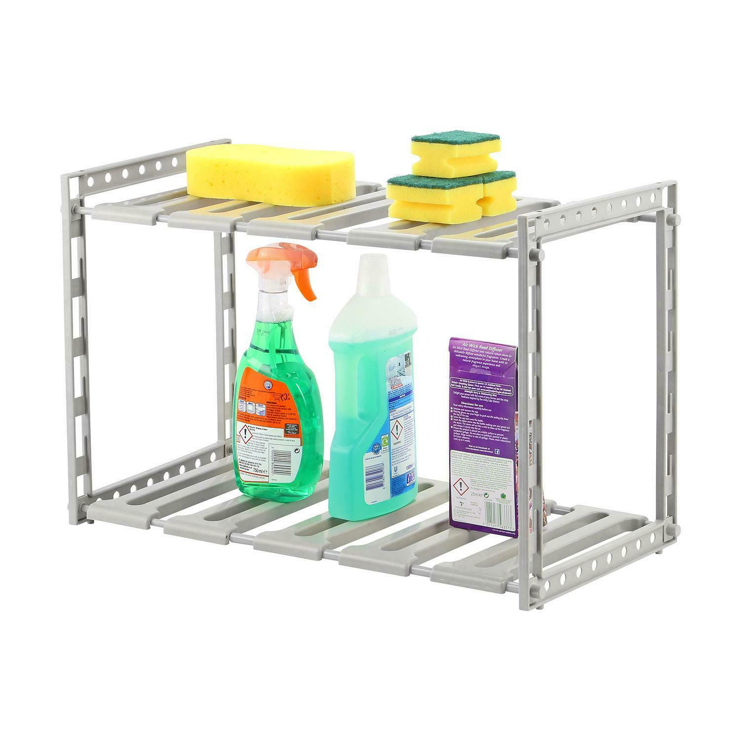 Adjustable Under Sink Kitchen Rack Plastic Shelf Caddy Organiser Storage Tidy