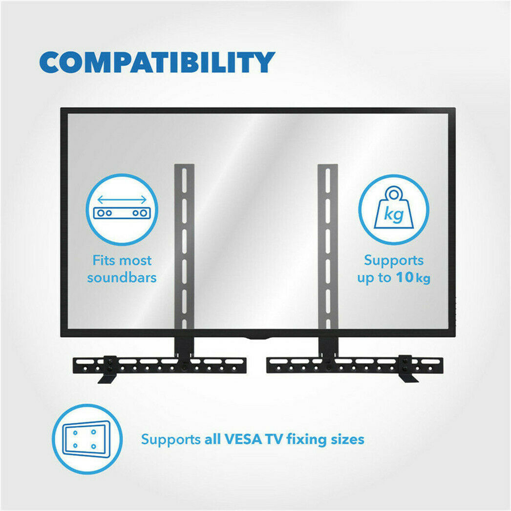 Adjustable Universal Soundbar Bracket Holder Mount Under or Over TV Fits Any TV