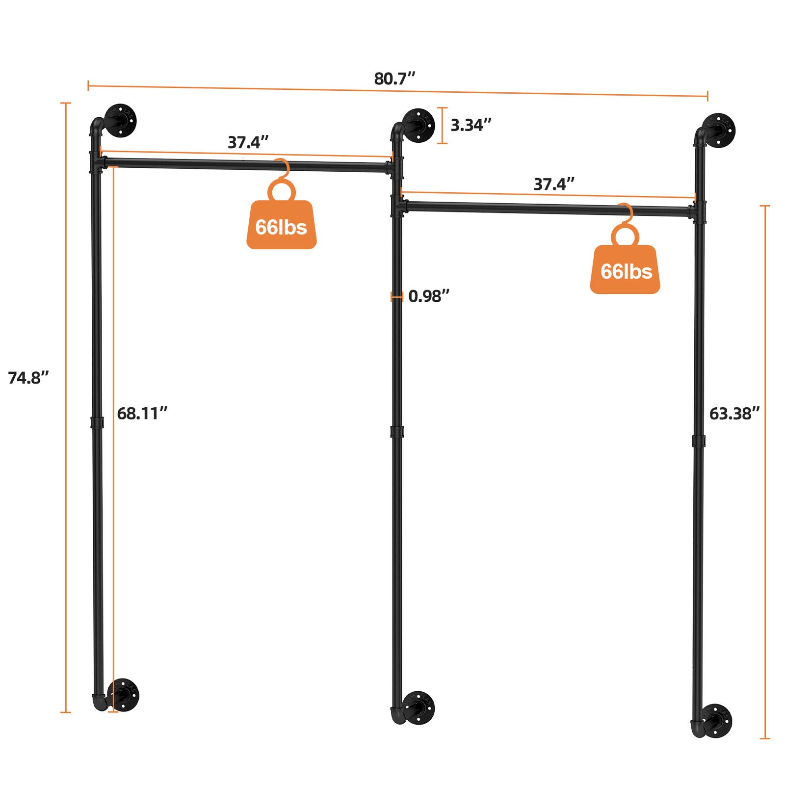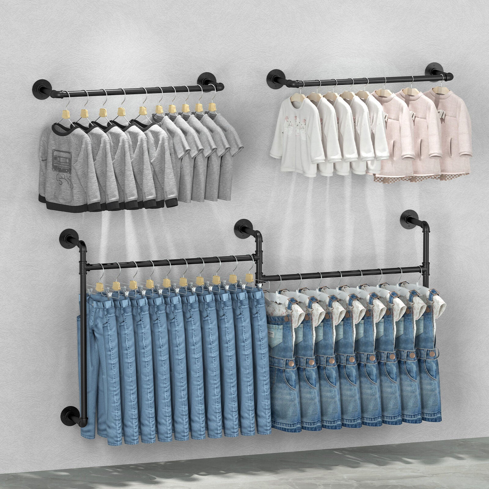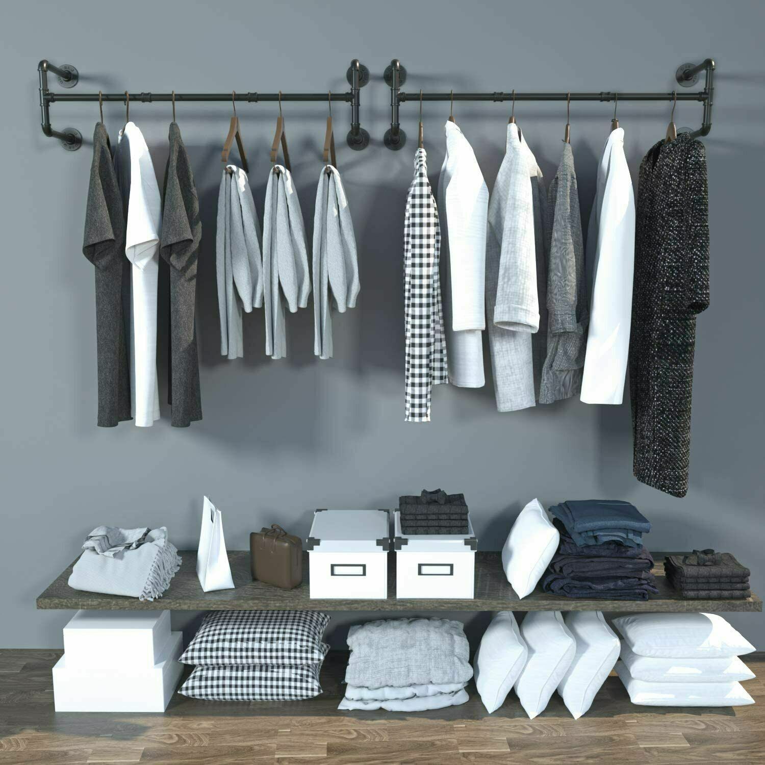 Adjustble Industrial Pipe Clothes Rack Garment Closet Hanging Bar Detachable