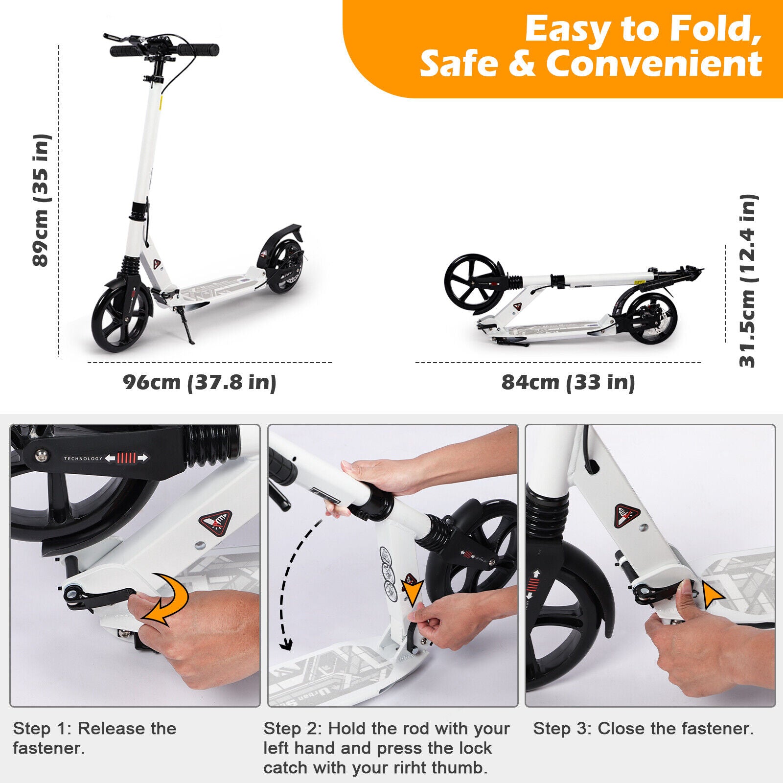 Adults Teens 200mm Wheels Kick Scooter Foldable Scooter Adjustable Handlebar
