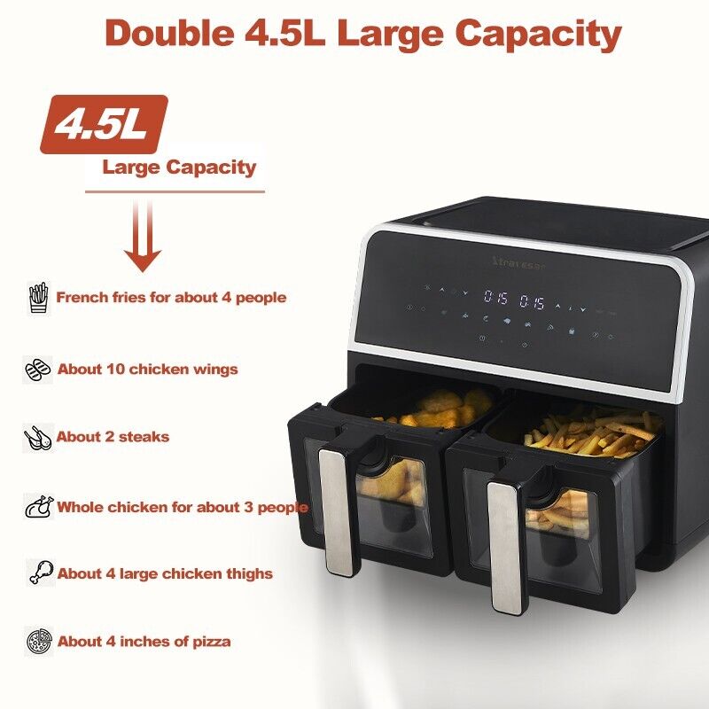 Air Fryer 9L1700 W Dual Zone Digital Display Oil Free Oven Cooker Frying