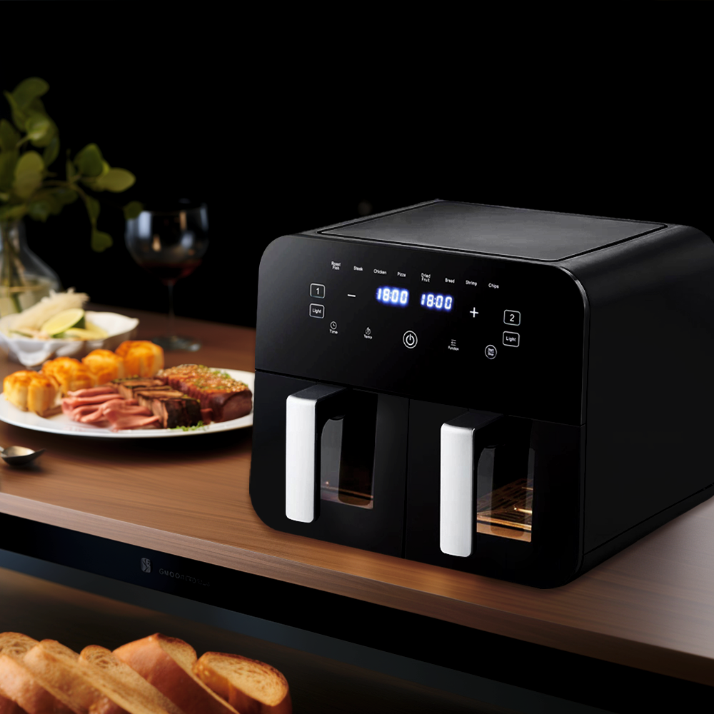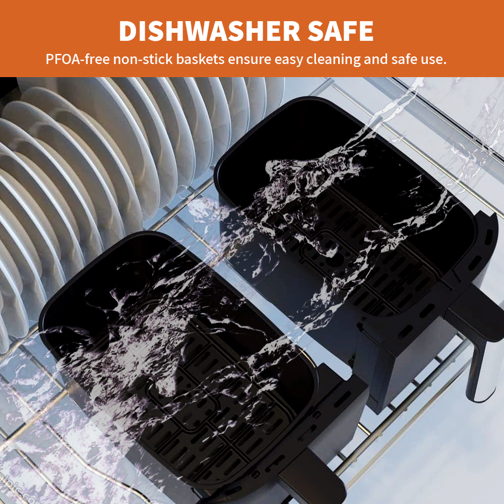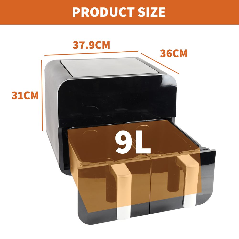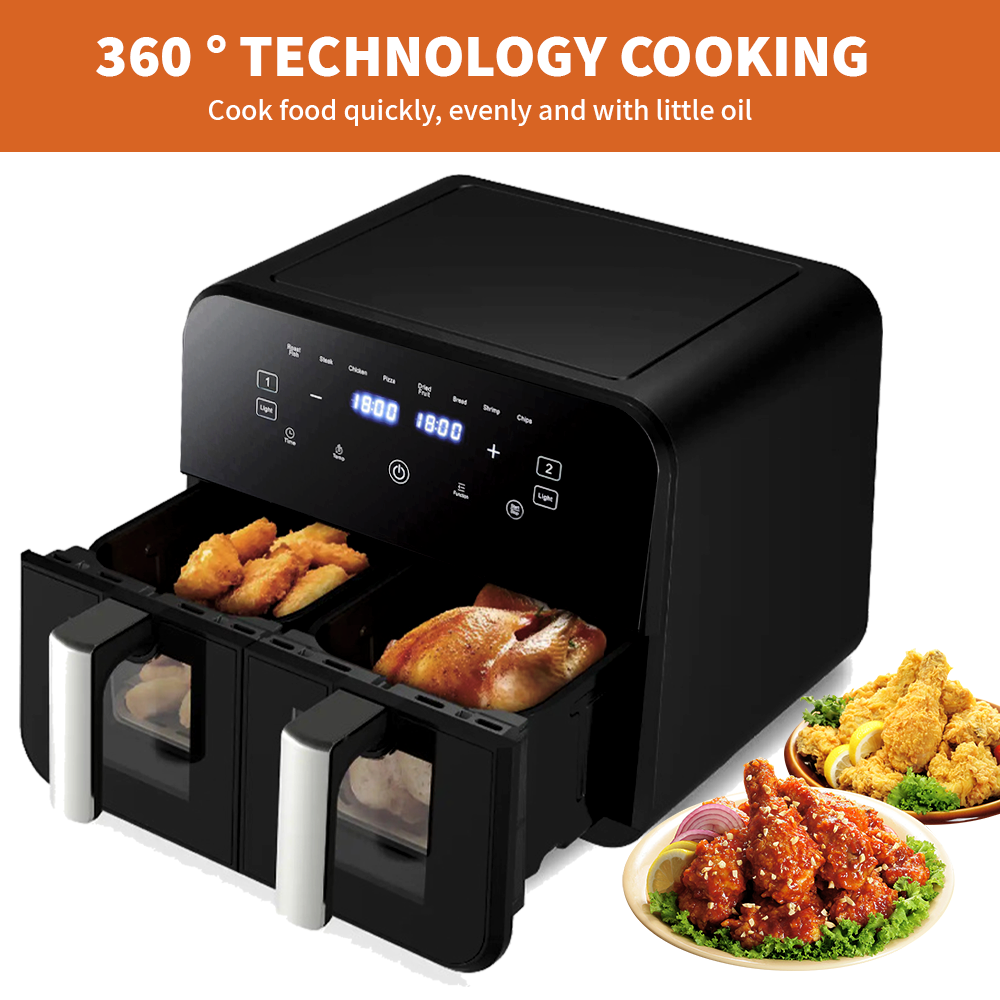 Air Fryer Dual Basket 9 Litre Touch Digital Display with Timer Non-Stick Kitchen