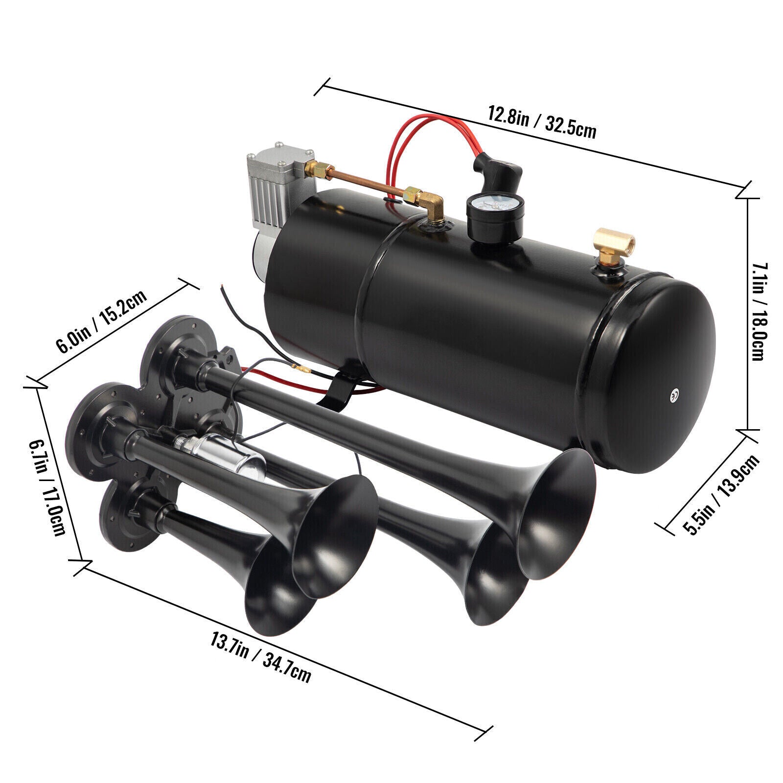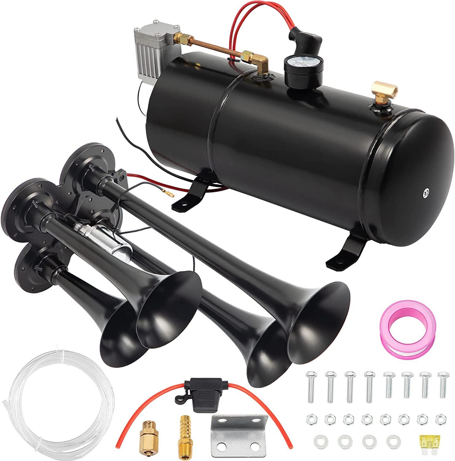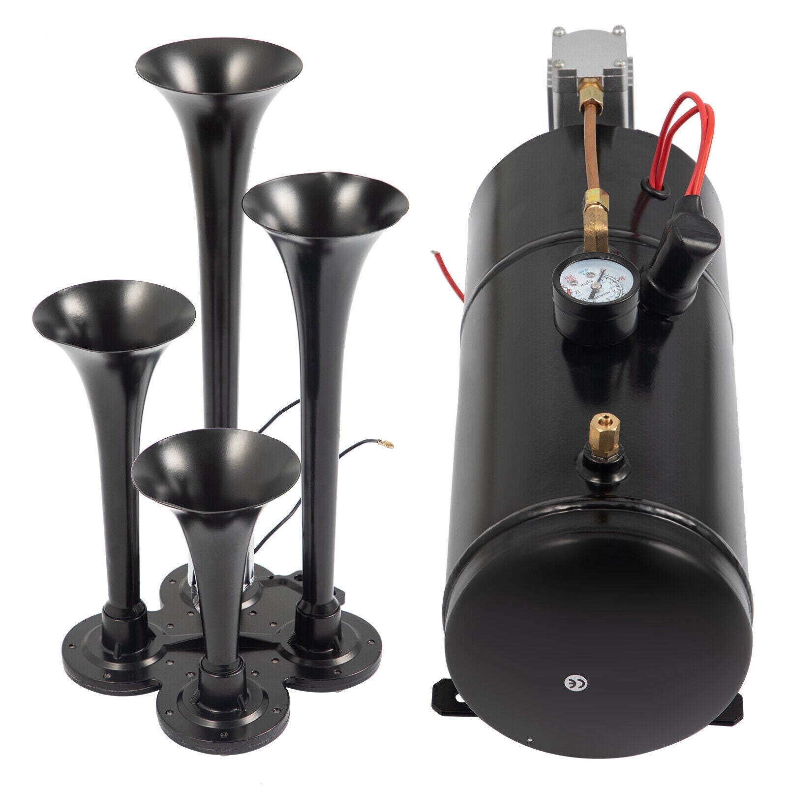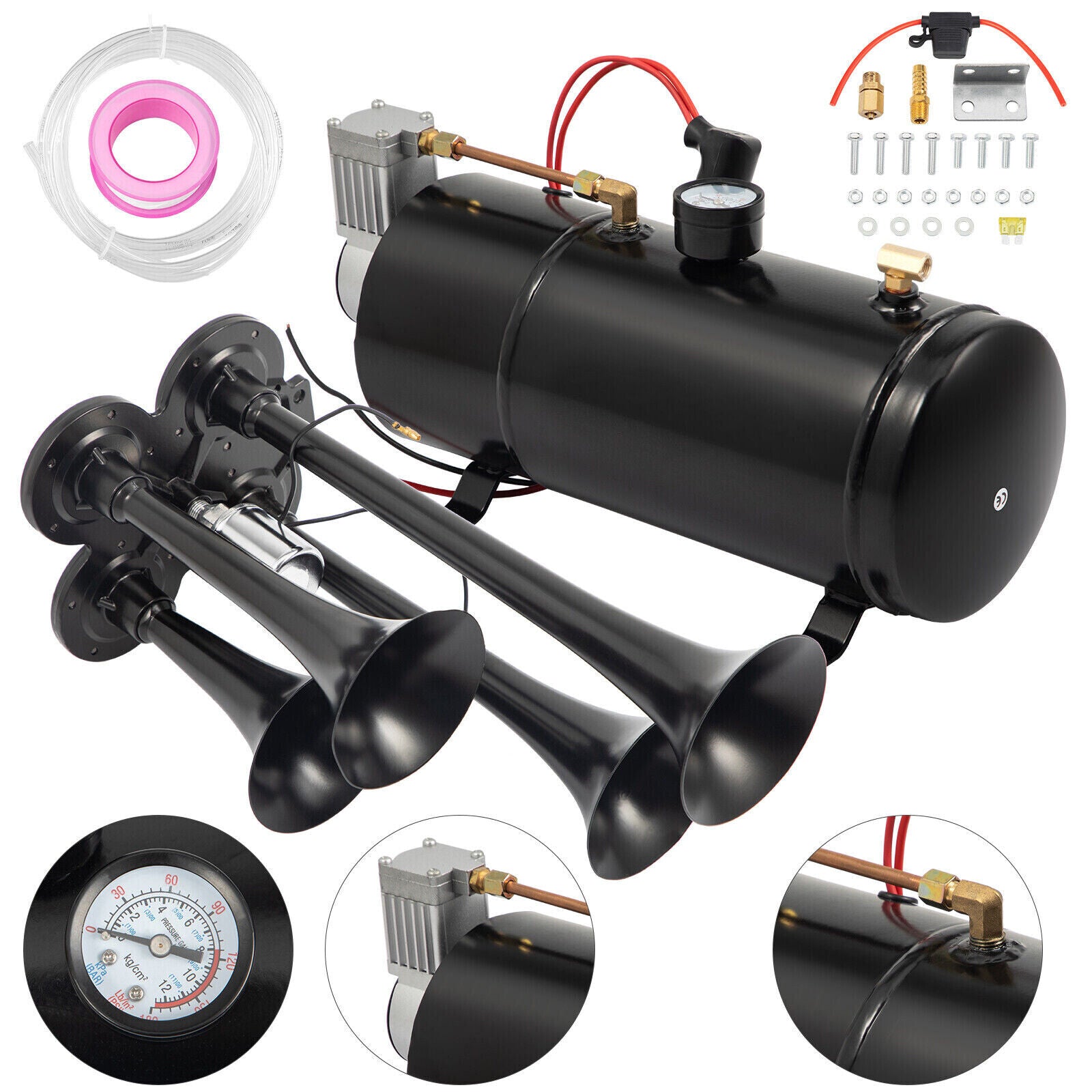 Air Horn Truck Train Horns Kit 12 Volt with 6L RV Compressor 4 Trumpet 150PSI
