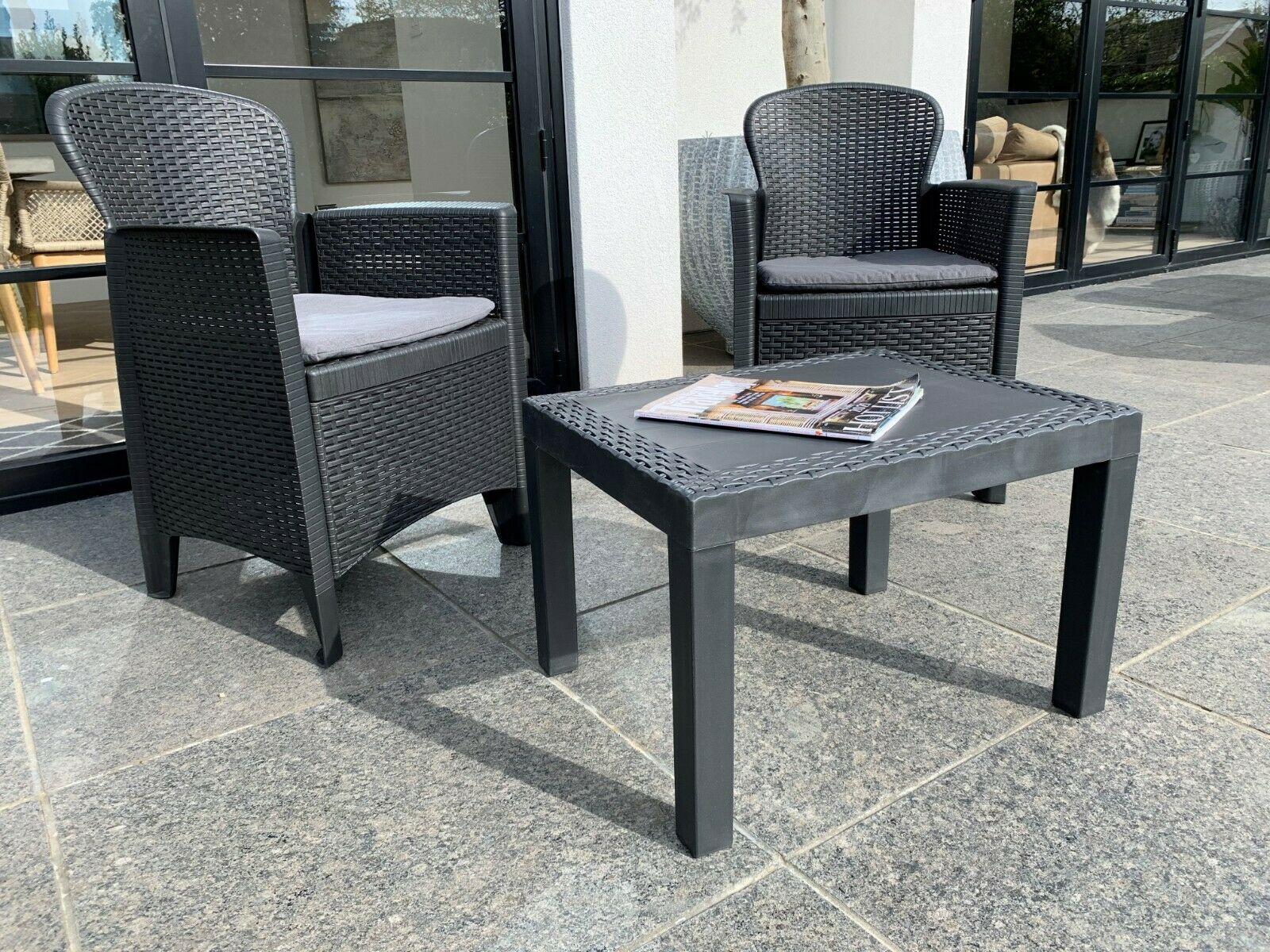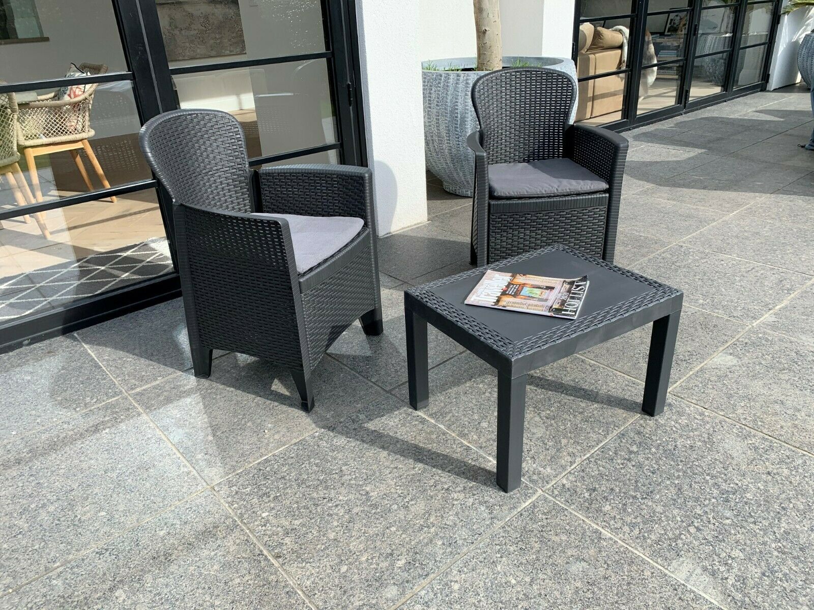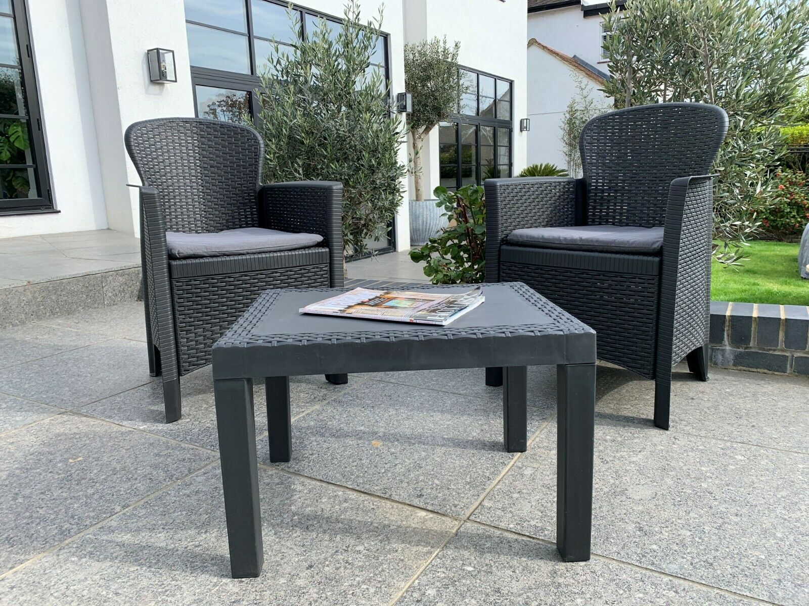 3 PIECE BISTRO SET TABLE AND CHAIRS RATTAN EFFECT GARDEN SET WITH CUSHIONS
