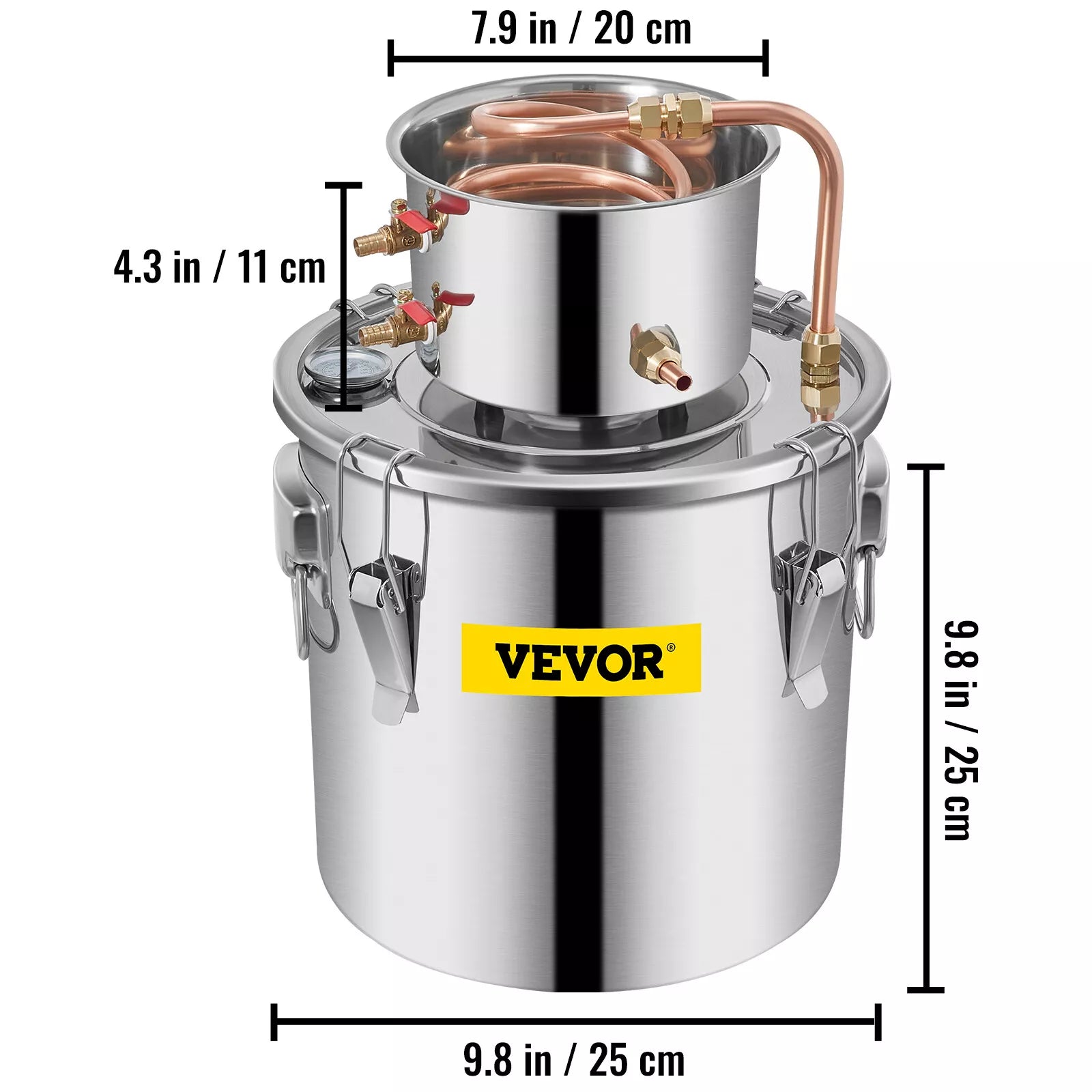 Alcohol Distiller 3Gal 12L Water Distiller Wine Maker 2Pots Red Copper Pipe SUS