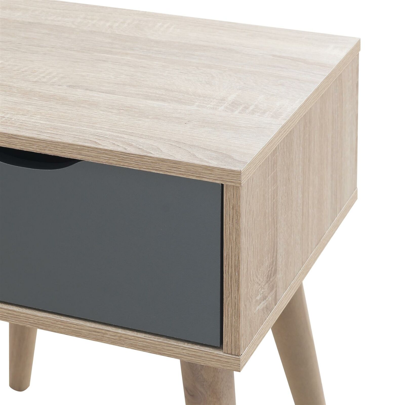 Alford Bedside Lamp Side Table 1 Drawer Scandinavian Sonoma Oak & Grey