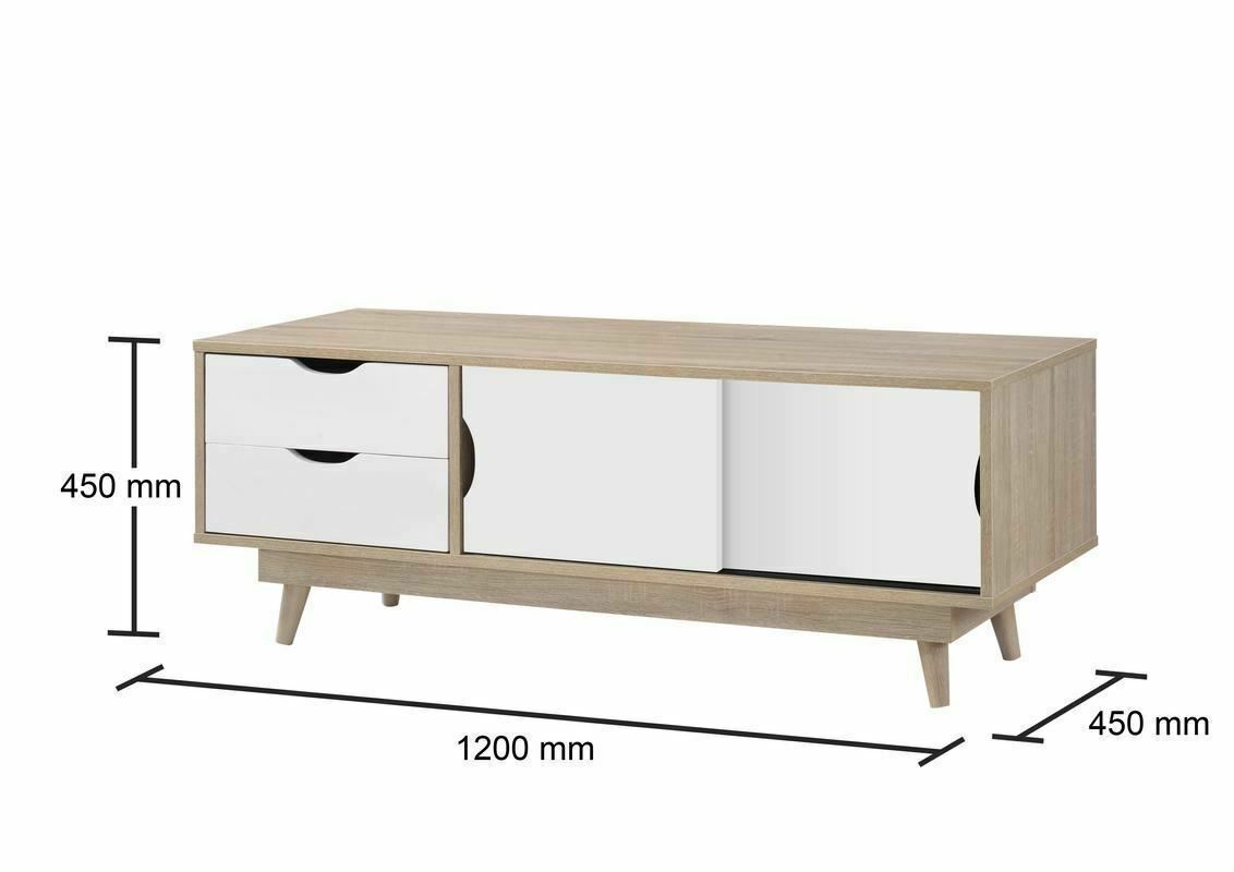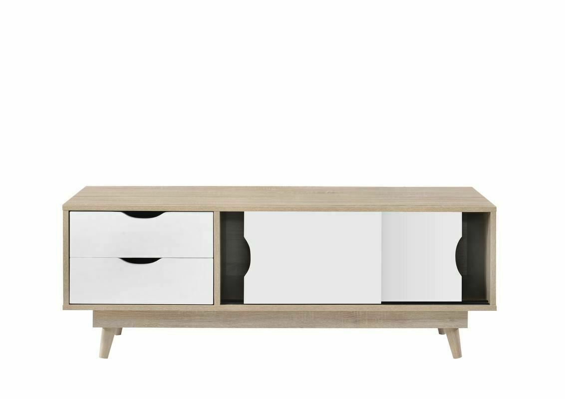 Alford Scandinavian Style TV Unit Stand 120cm Media Cabinet + Drawers Oak White