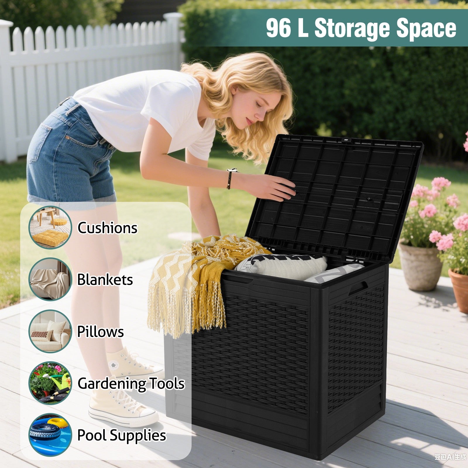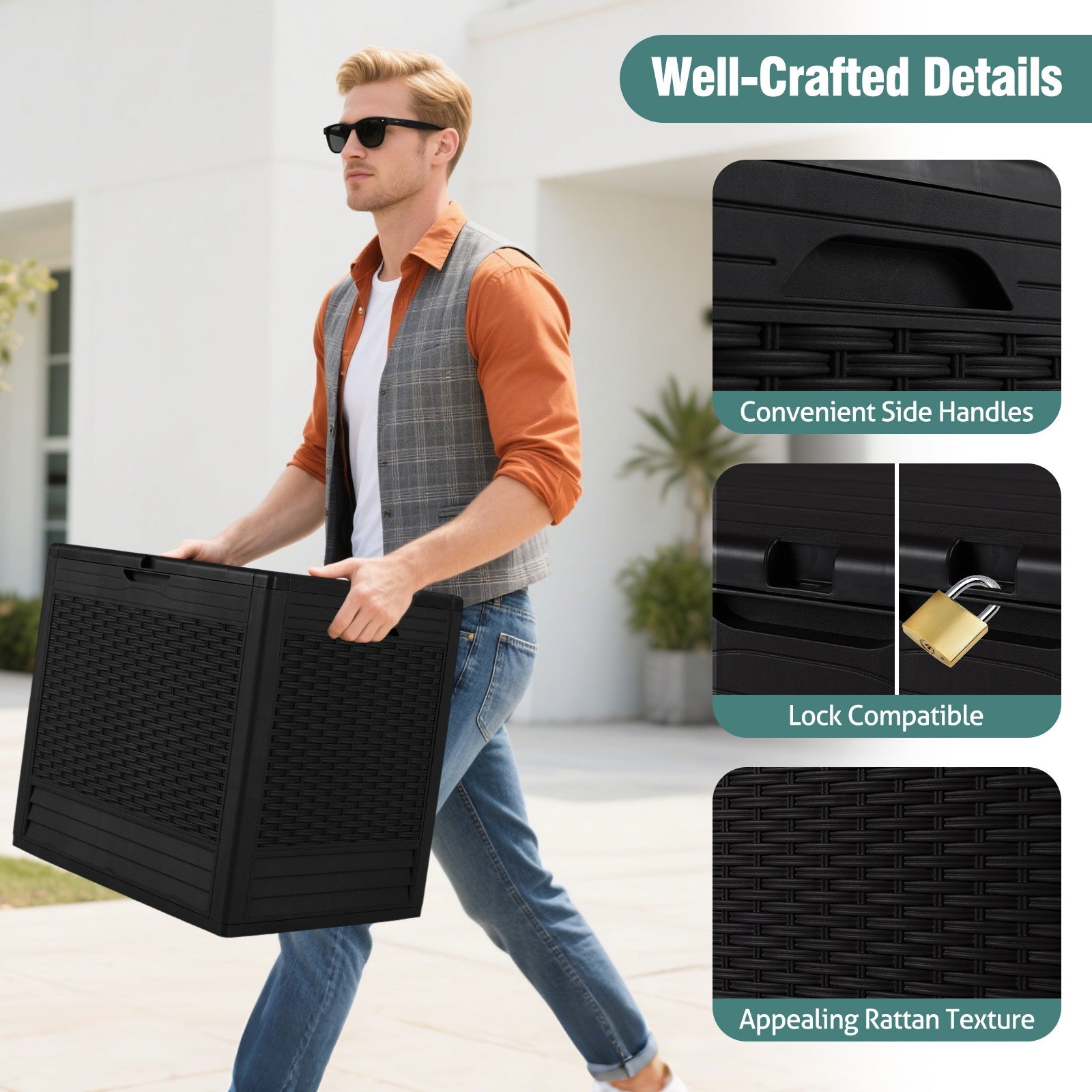 All-Weather Patio Plastic Storage Bin with Lockable Lid-Black