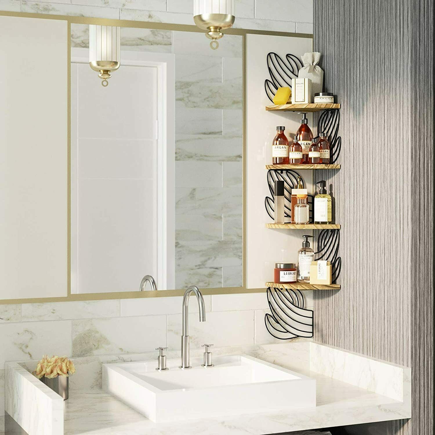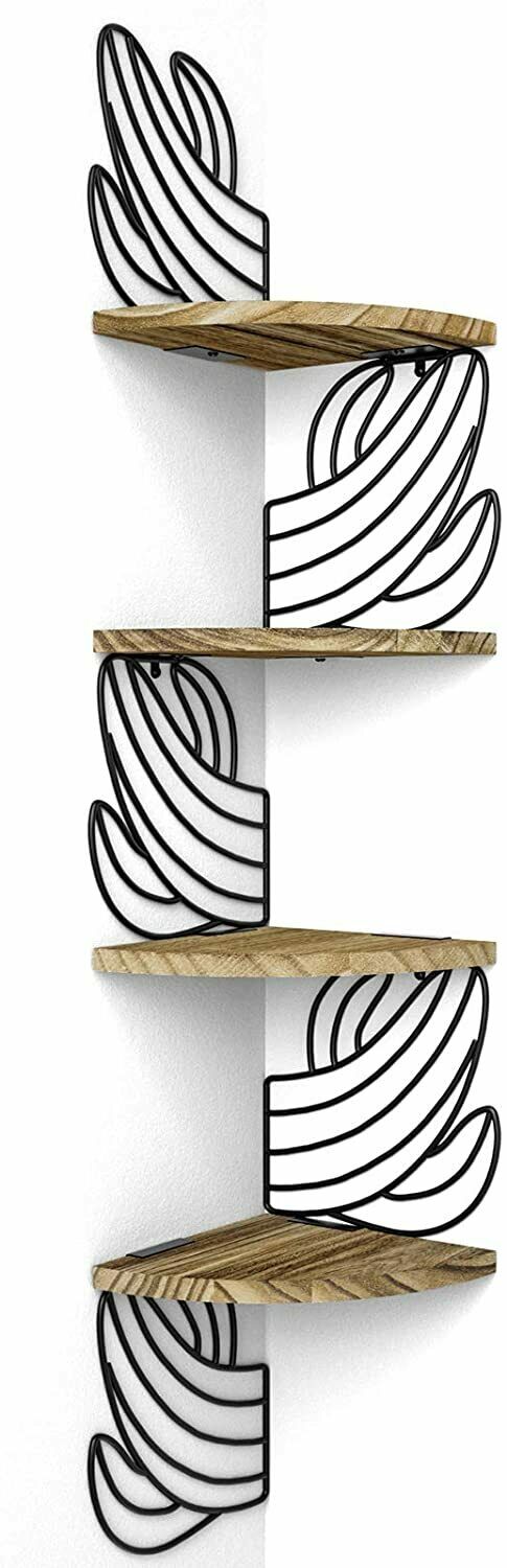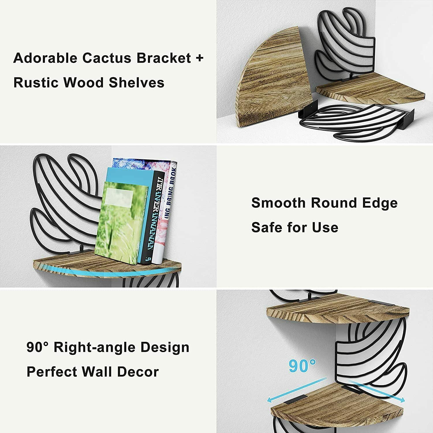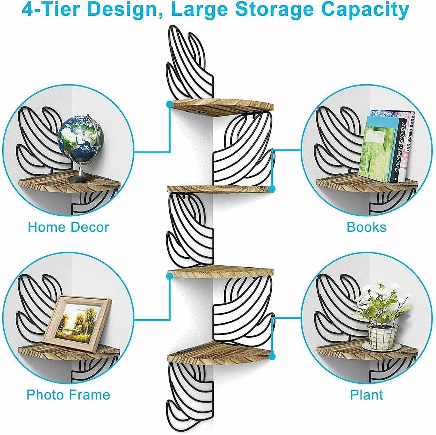 Alsonerbay Corner Shelf, 4 Tier Corner Shelves Rustic Wood Floating Shelf Cactus