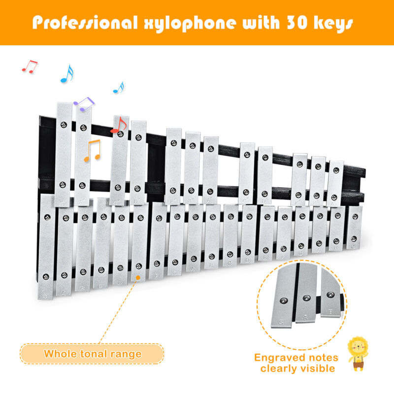 Alto Full Size Glockenspiel Xylophone Foldable Percussion Instrument W/30 Note