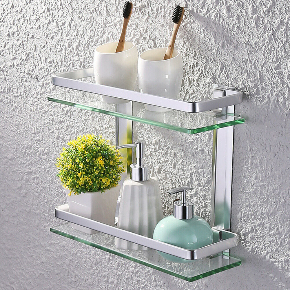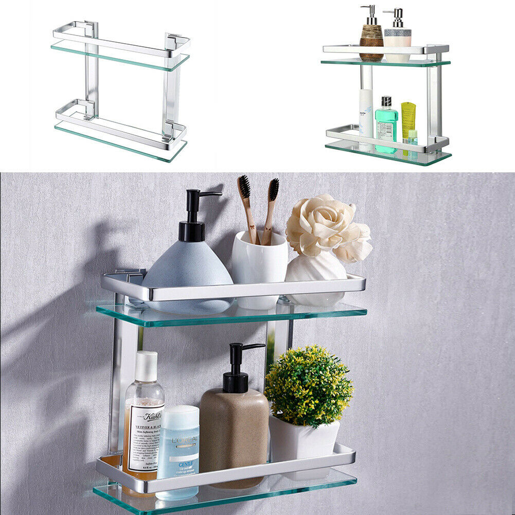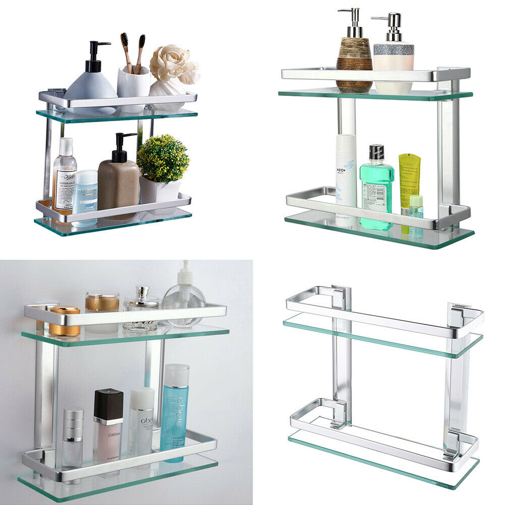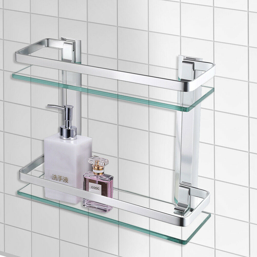 Alu Bath Showering Shelf Storage Rack Glass Corner Wall Holder Caddy Organizers