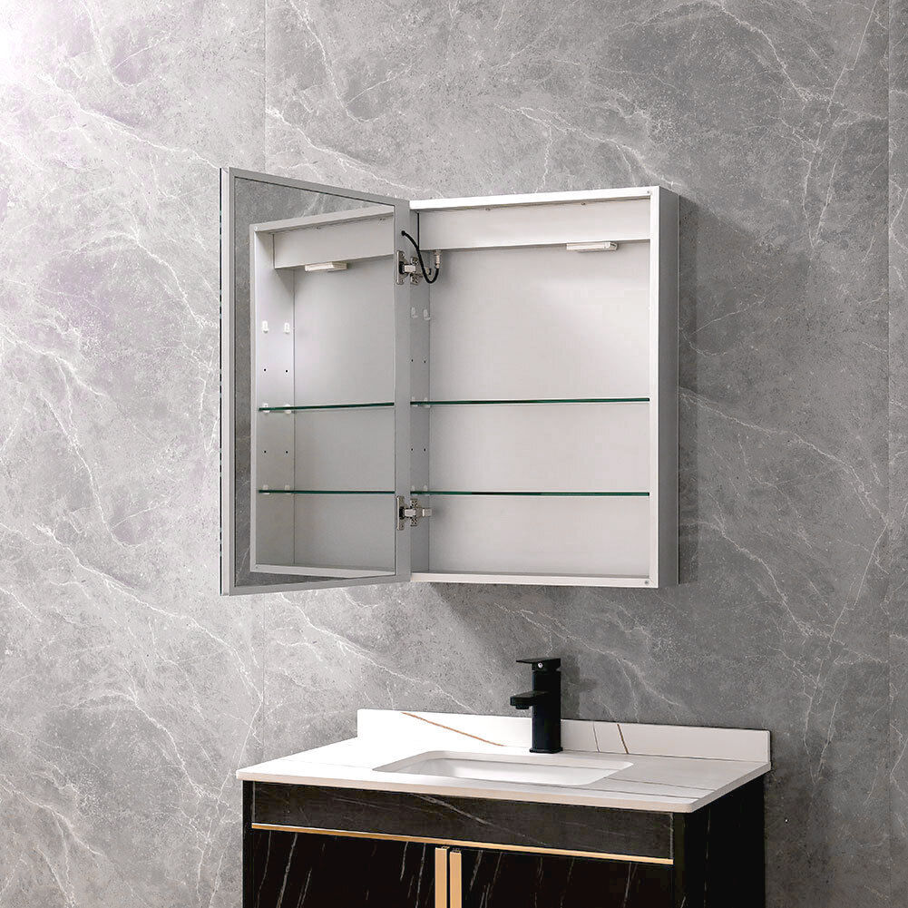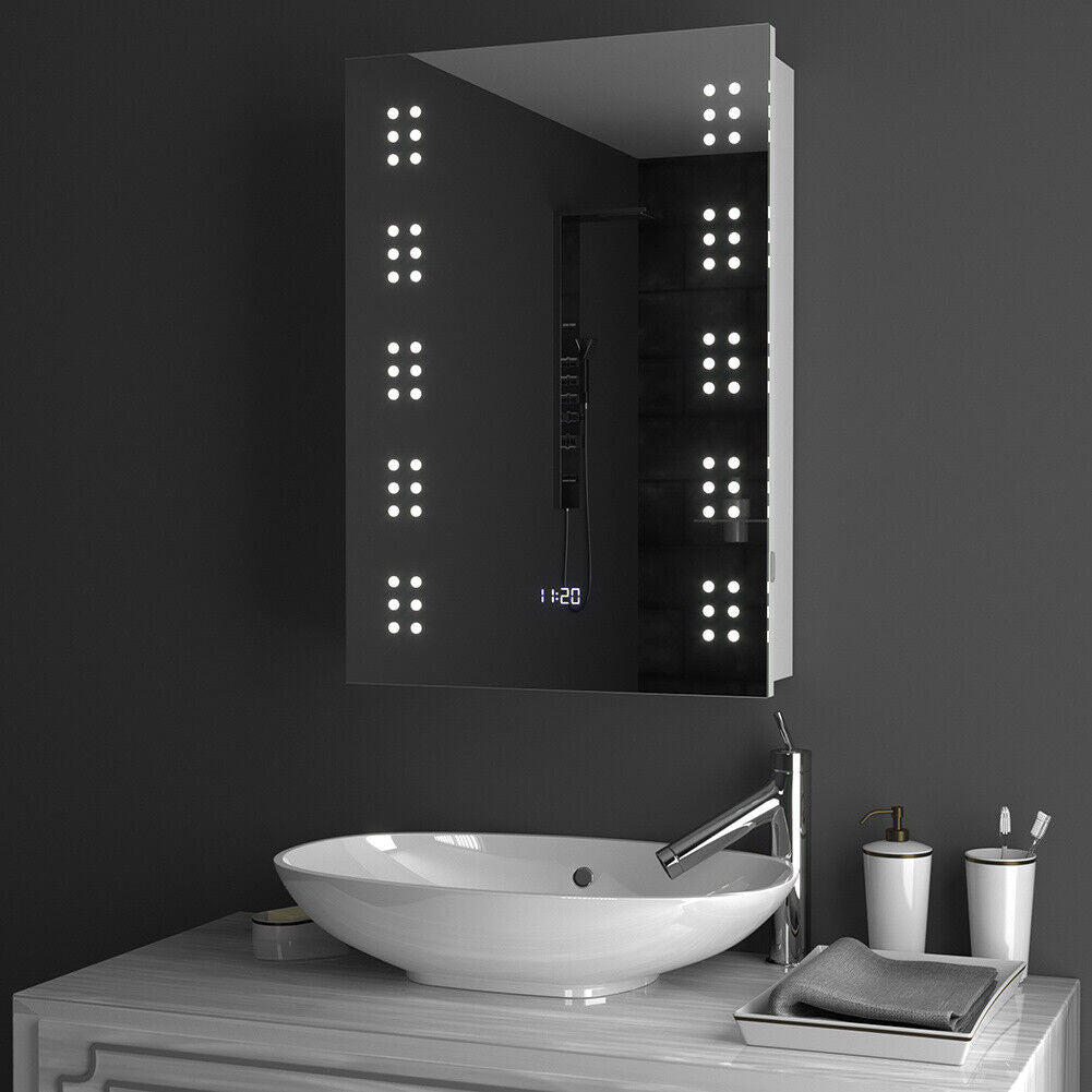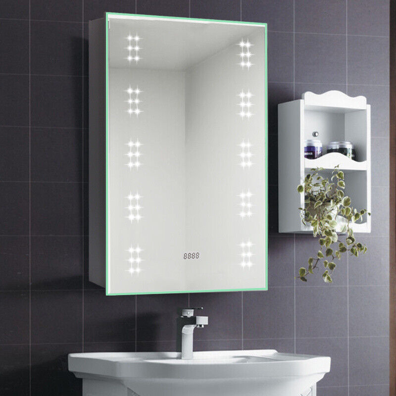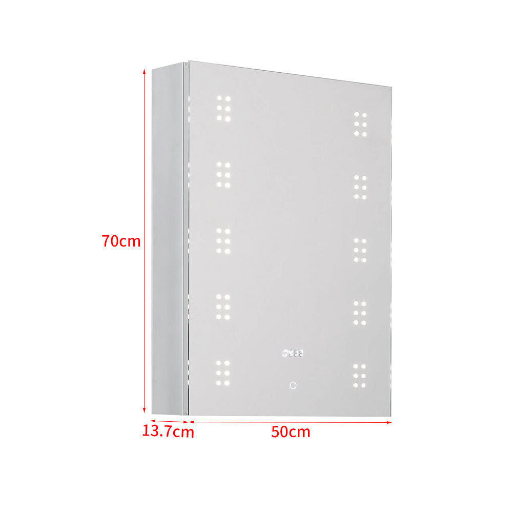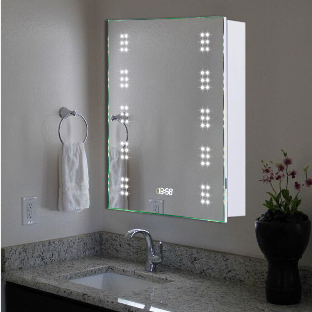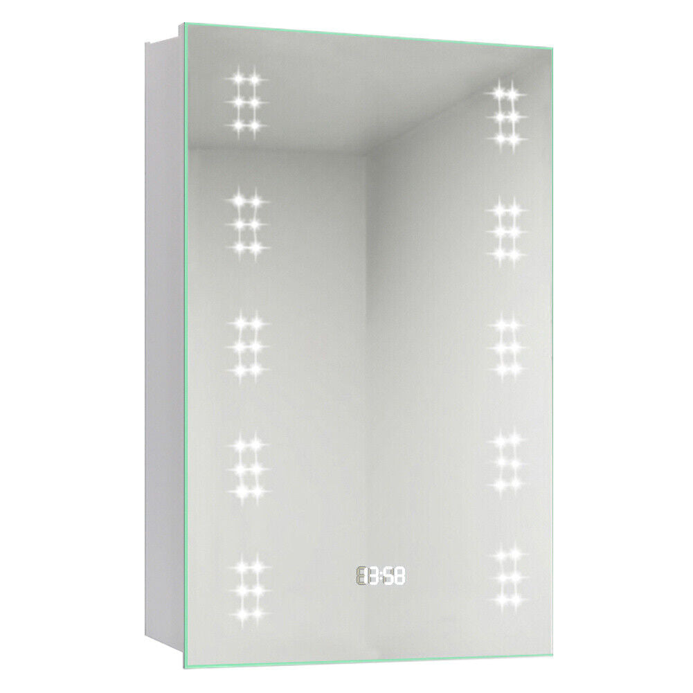 Aluminum Bathroom Mirror Cabinet LED Illuminated Storage with Clock Socket Light