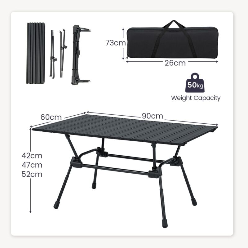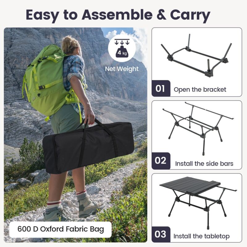 Aluminum Camping Table Outdoor Folding Picnic Table W/ 4-Level Adjustable Height