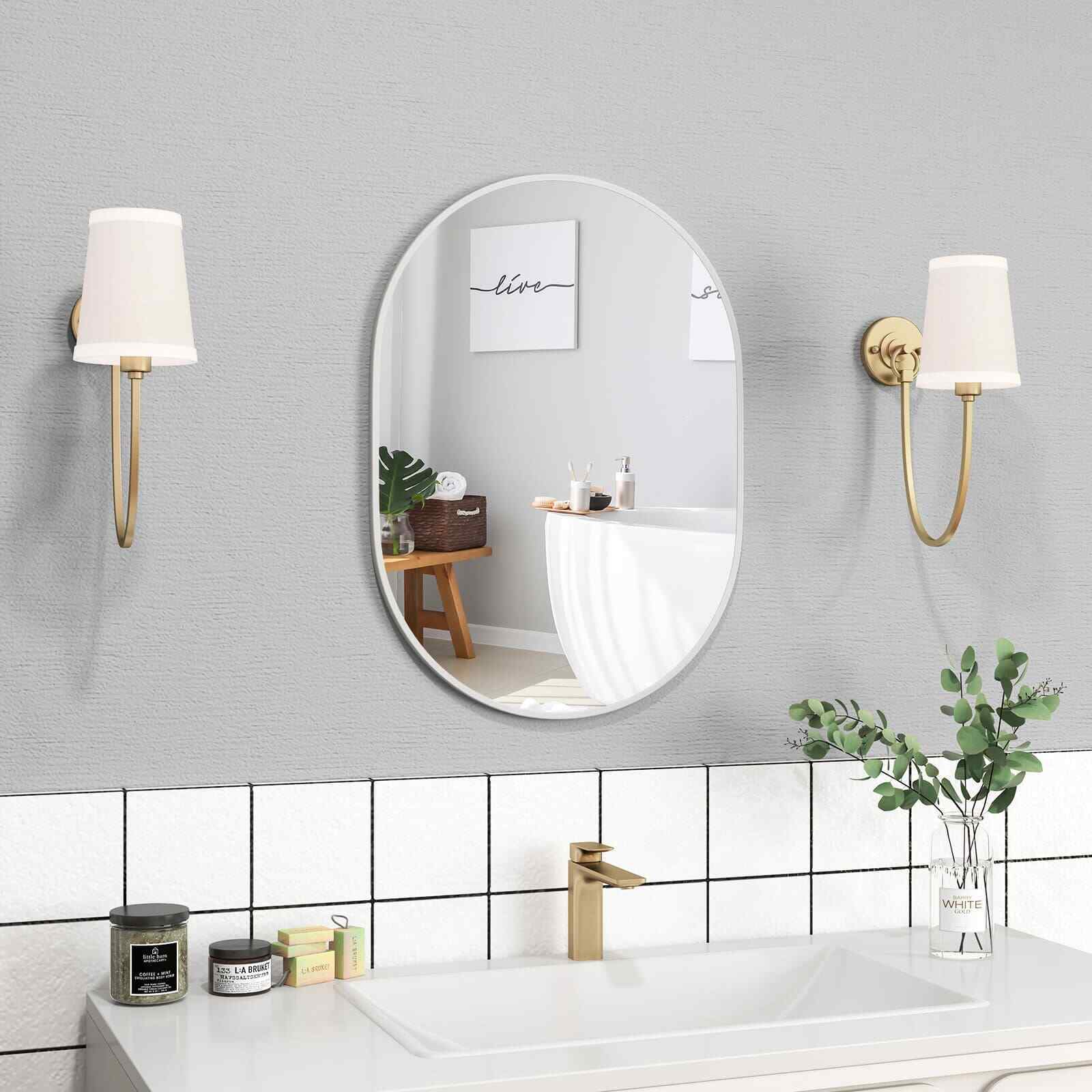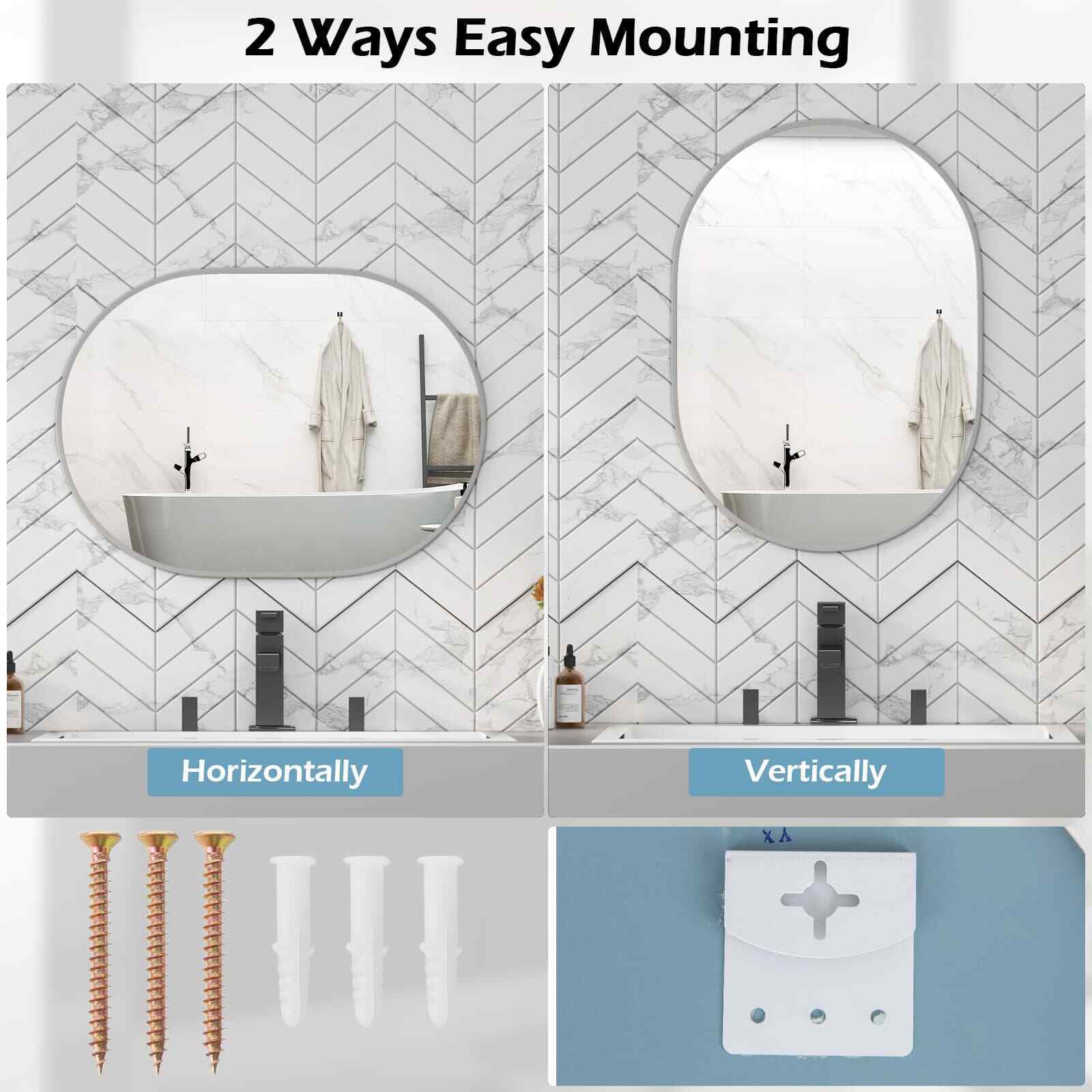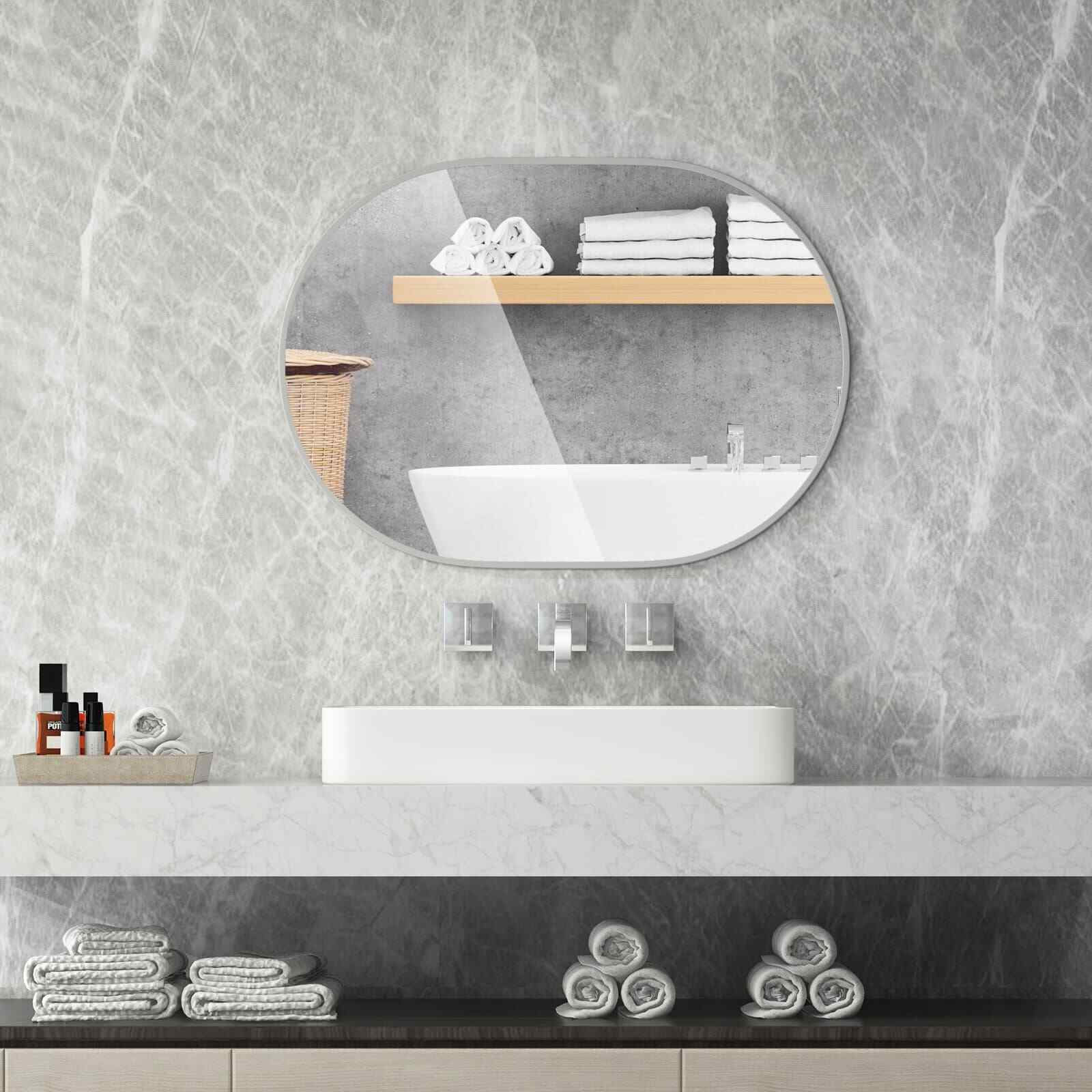 Aluminum Framed Wall Mounted Mirror Bathroom Rounded Vanity Mirror