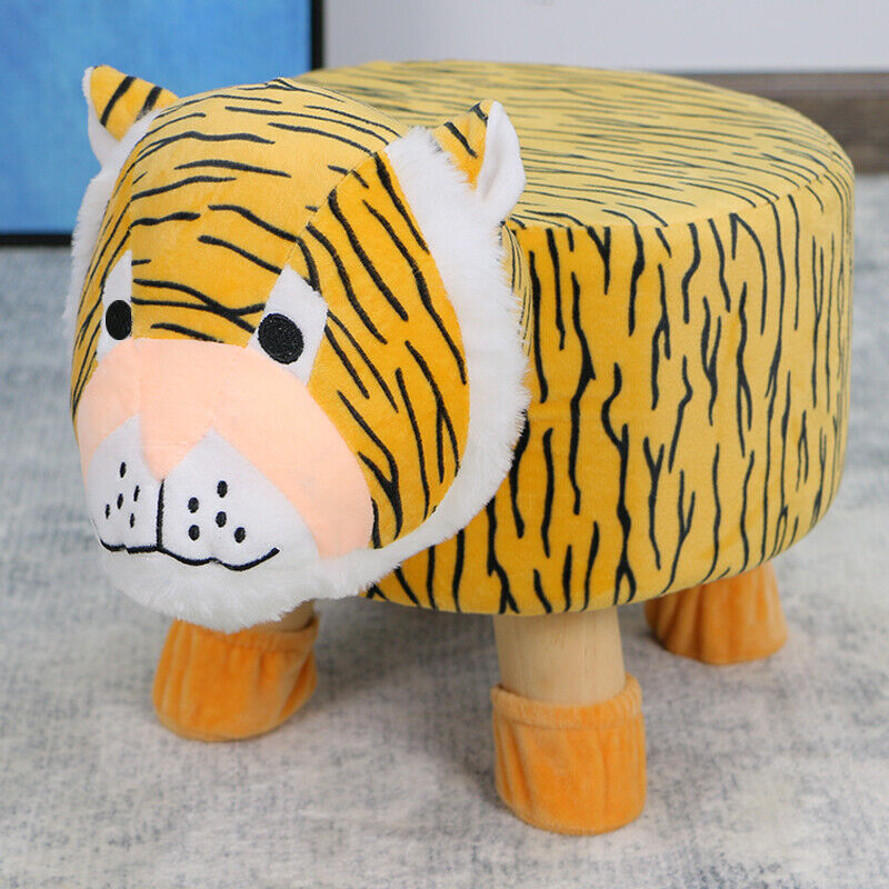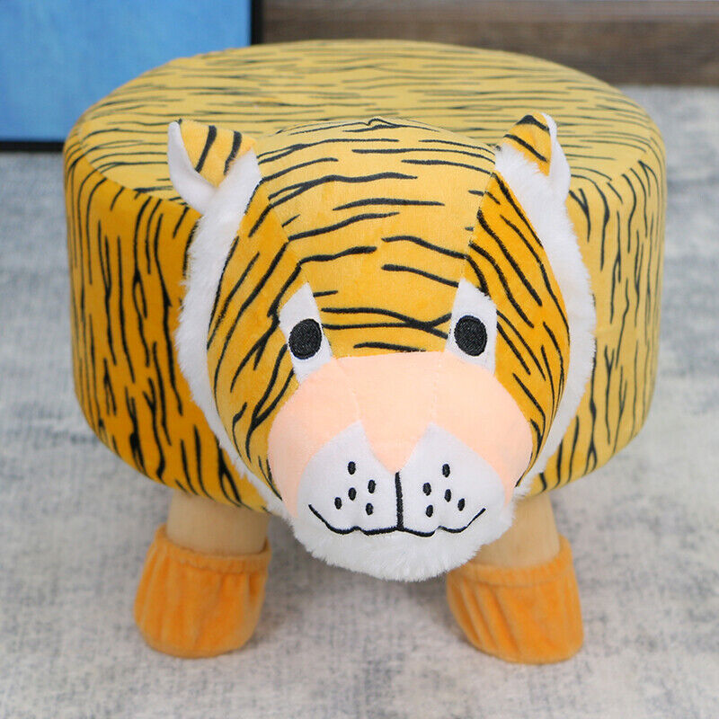 Animal Footstool Upholstered Padded Stool Pouffe Seat Chair Sturdy Wooden Legs