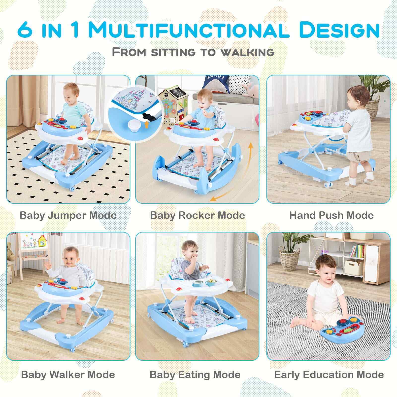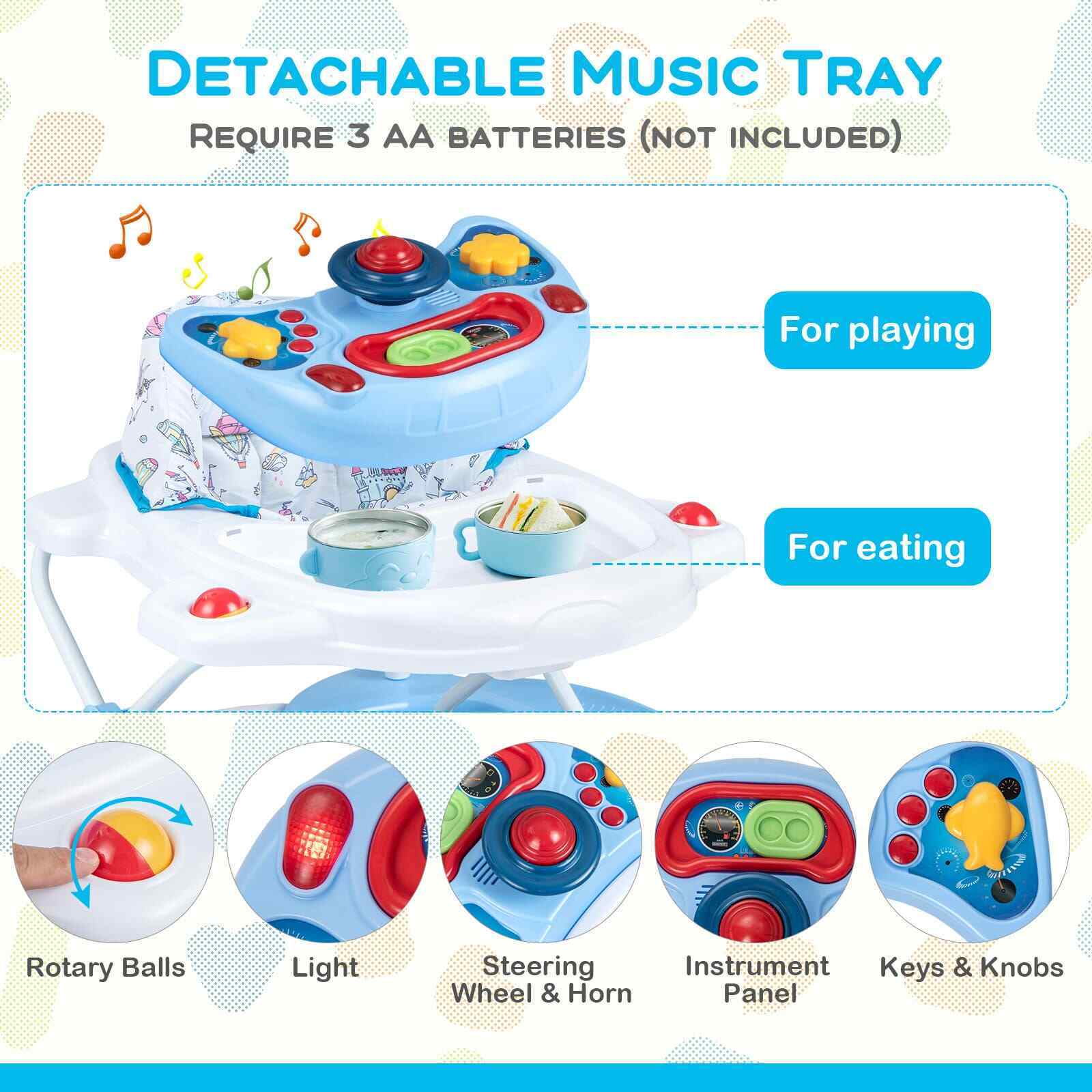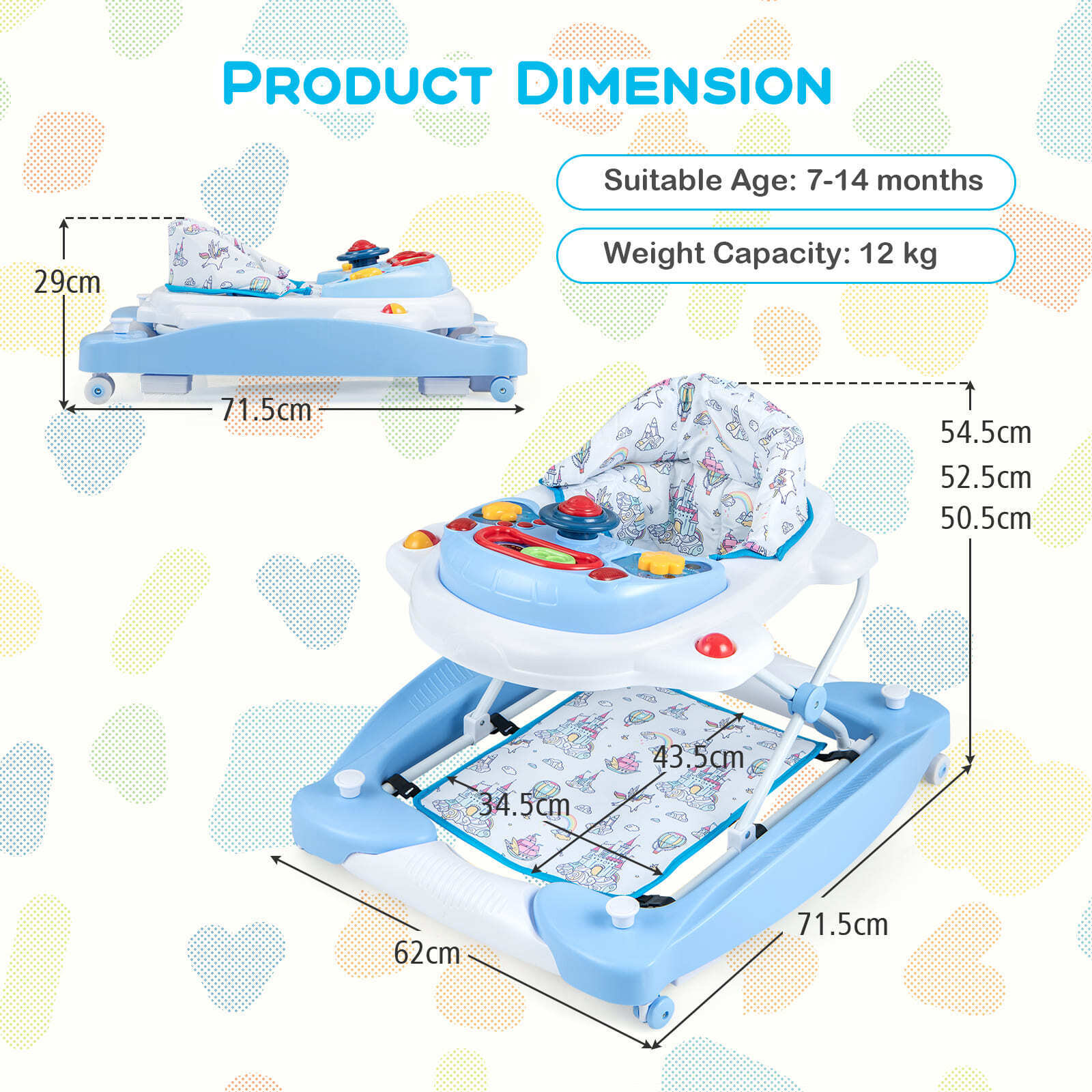 Anti-Rollover Toddler Walker & Activity Center w/ Adjustable Height Blue