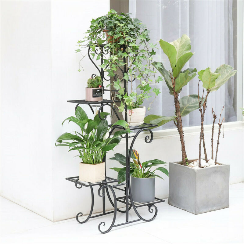 Anti Rust Iron Plant Stand Multiple Flower Pot Shelf Holder Indoor Outdoor Rack