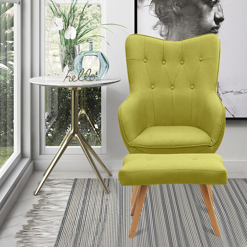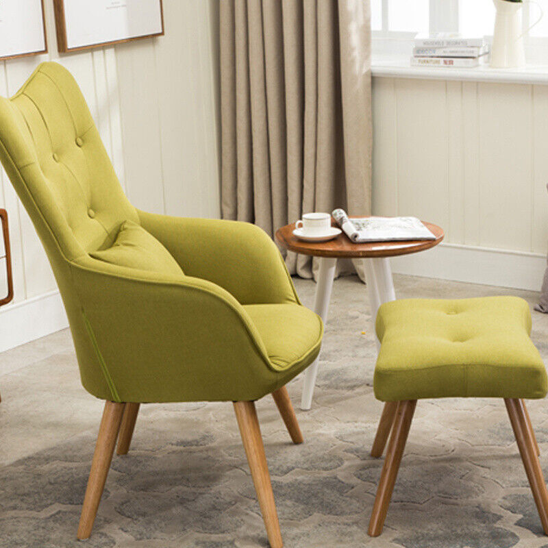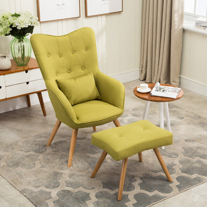 Antique Style Wingback Occasional Accent Chair Armchair Wooden Legs with Stool