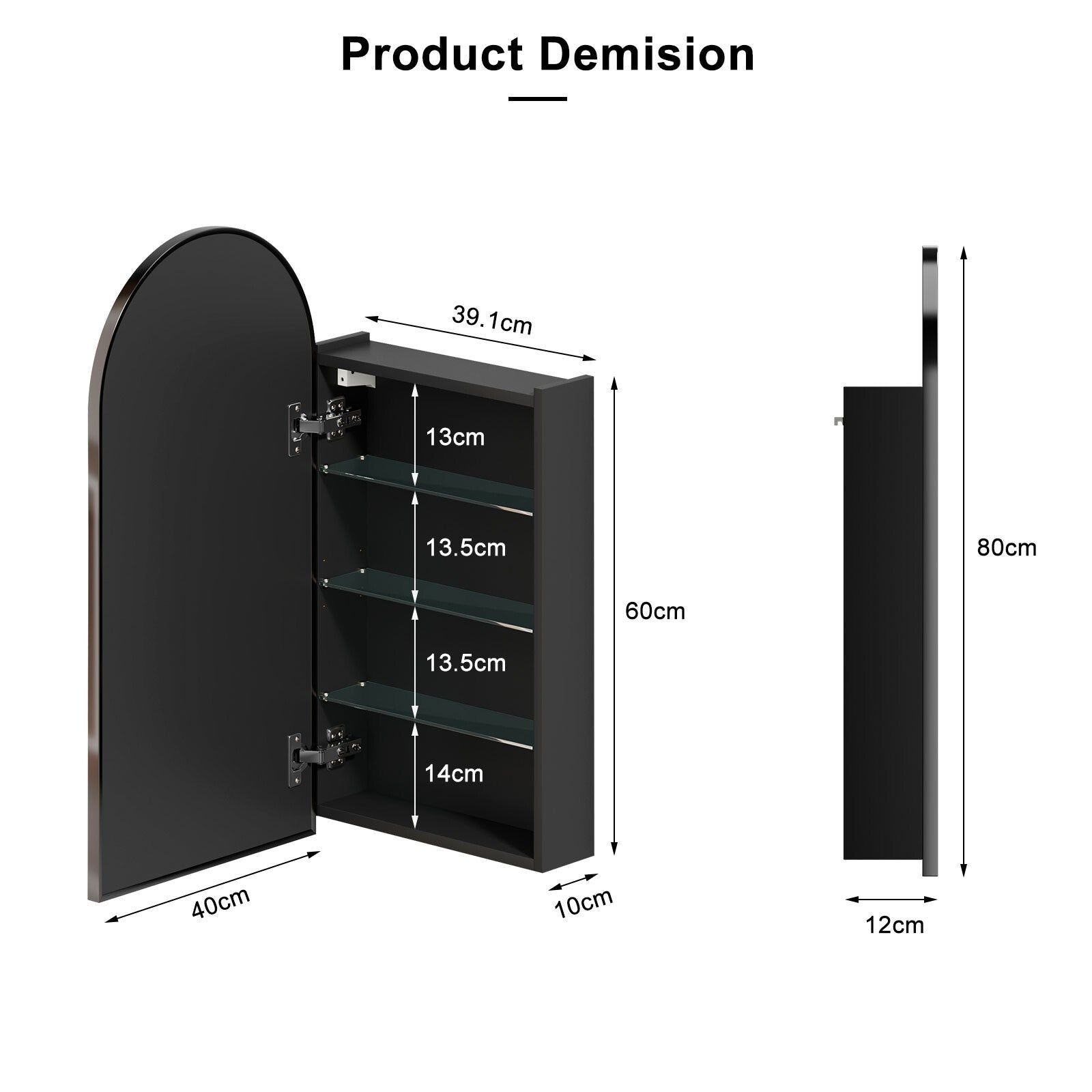 Arched Bathroom Mirror Cabinet Metal Framed Premium Black Wall Mounted Storage