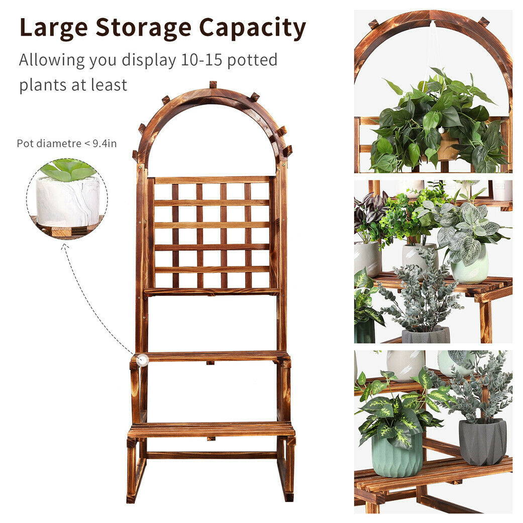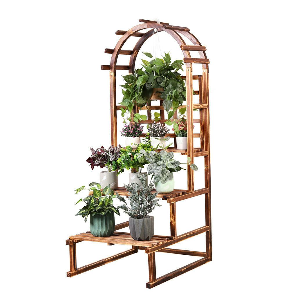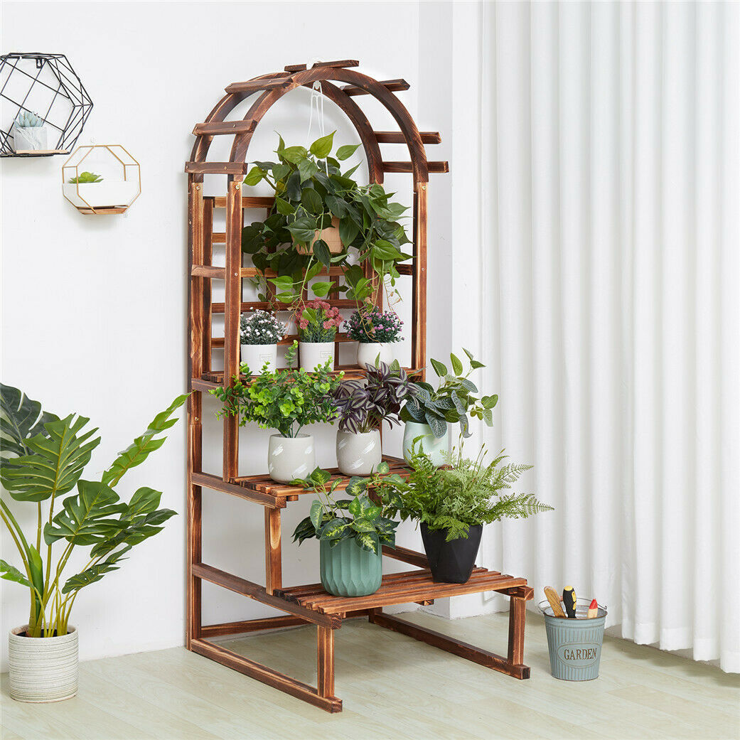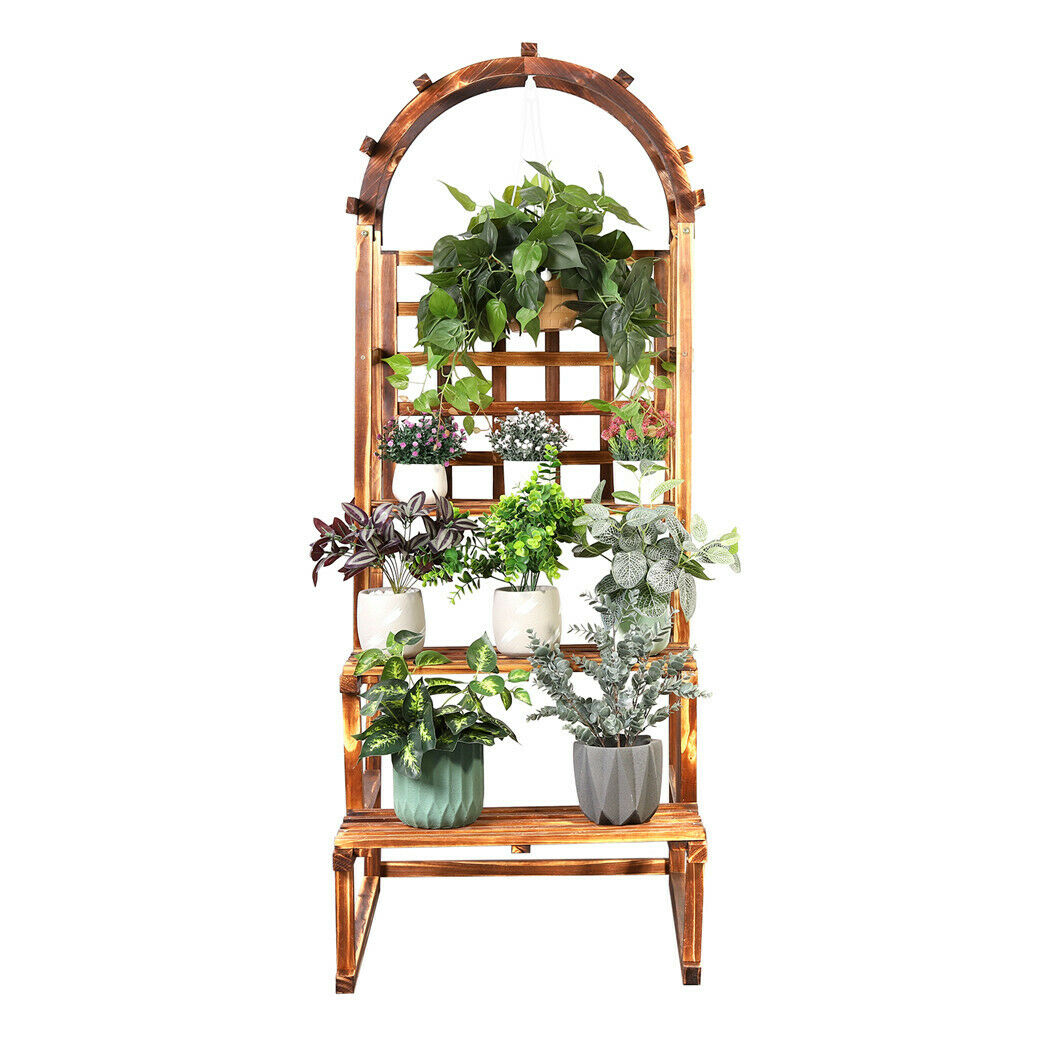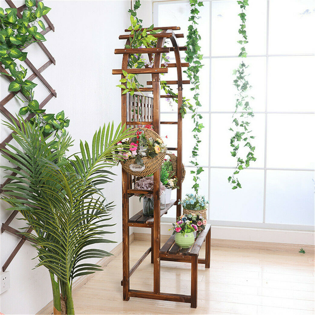 Arched Hollow Grid Wooden Storage Flower Pot Hanger Planter Climbing Stand Shelf