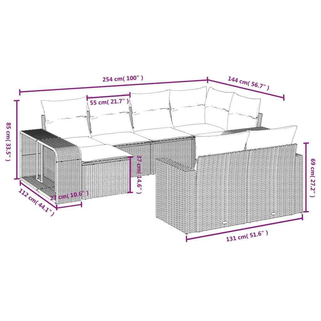 ARKEM 10 Piece Garden Sofa Set with Cushions Black Poly Rattan,Garden D8K1