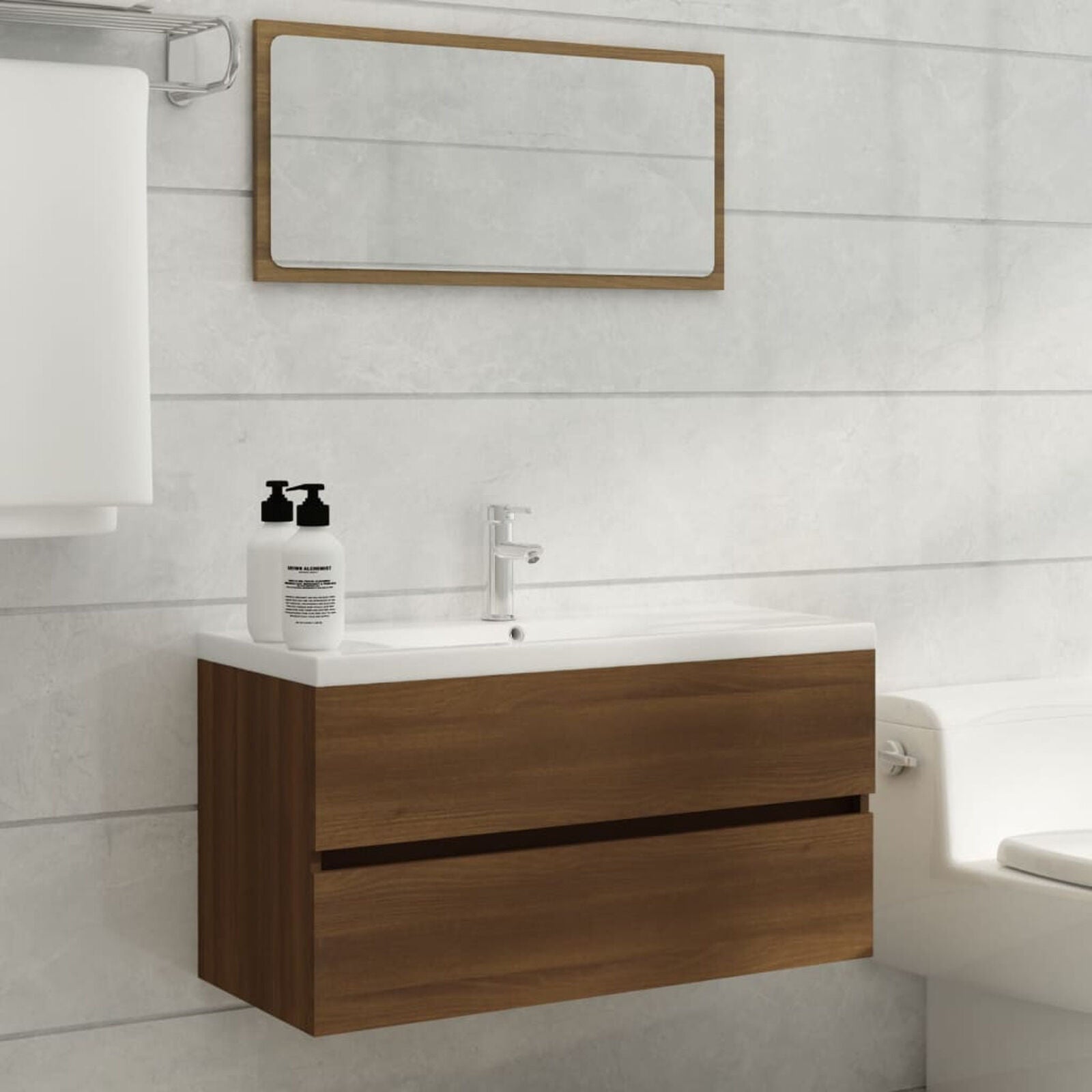 ARKEM Sink Cabinet Brown Oak 90x38.5x45 Engineered Wood,Vanity Unit with B3O0