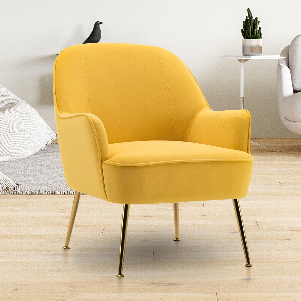 Armchair Accent Tub Chair Yellow Velvet Sofa Metal Legs Living Bedroom Furniture