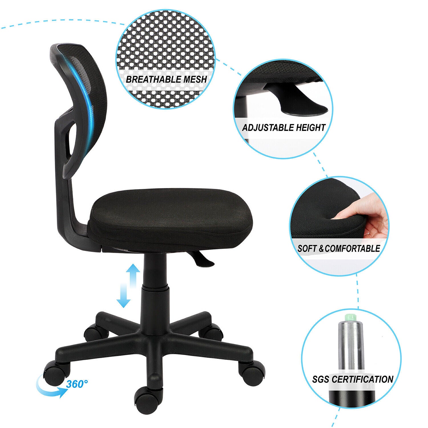 Armless Mesh Office Chair Mid-Back Study Chair Adjsutable Computer Desk Chairs