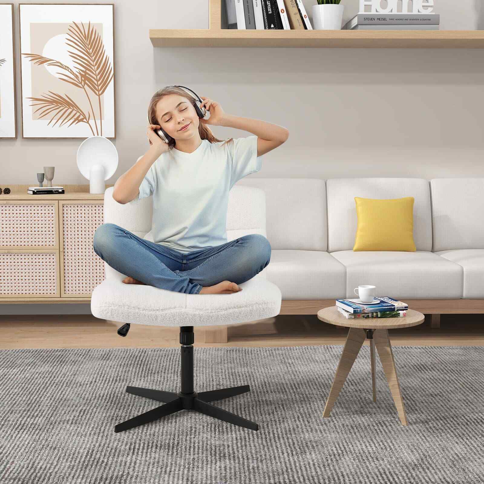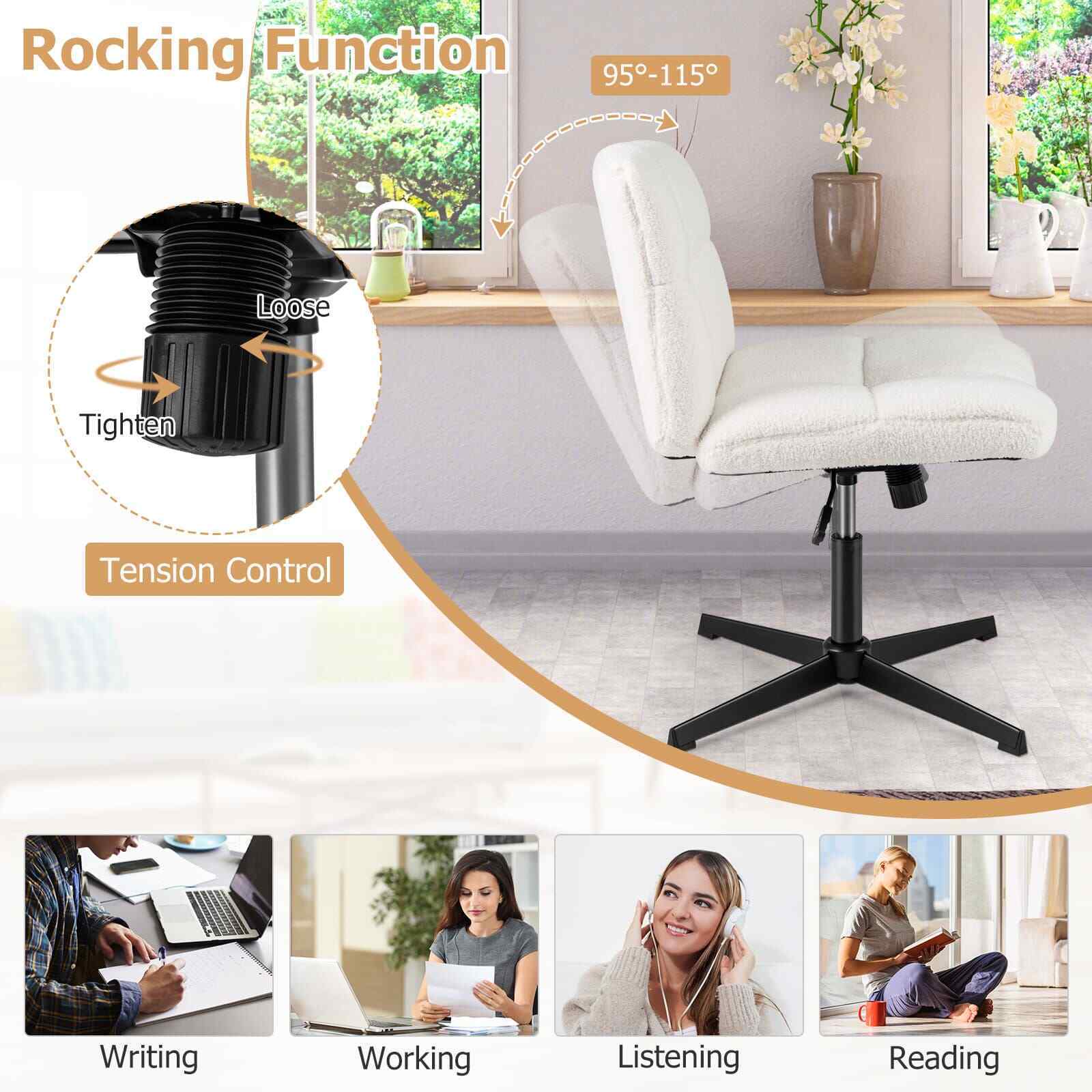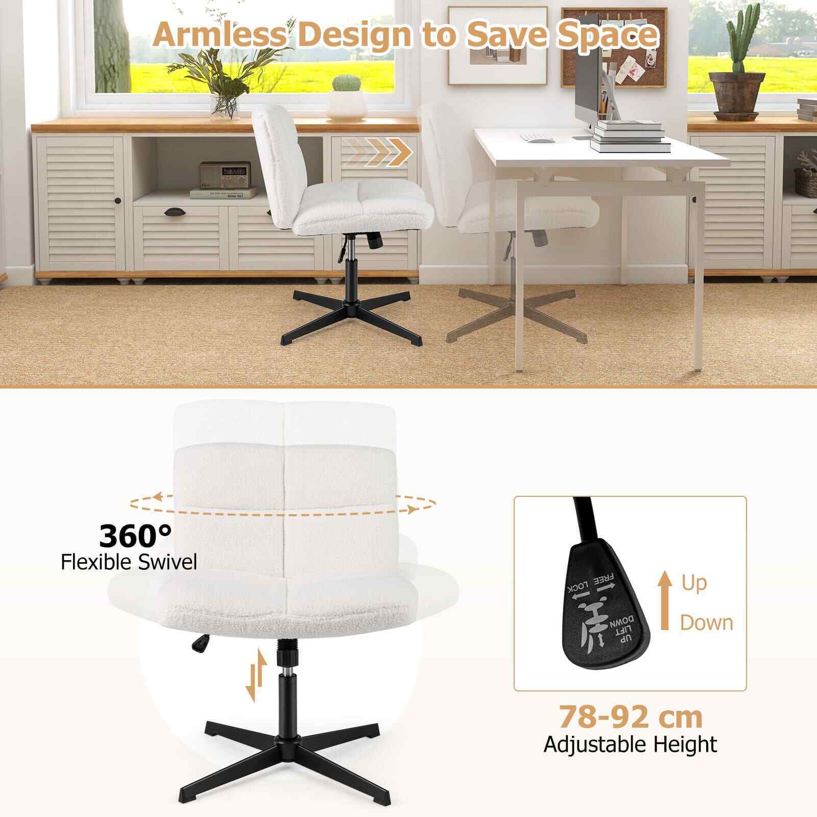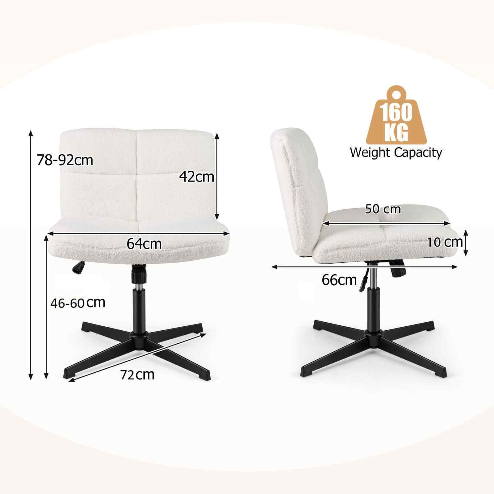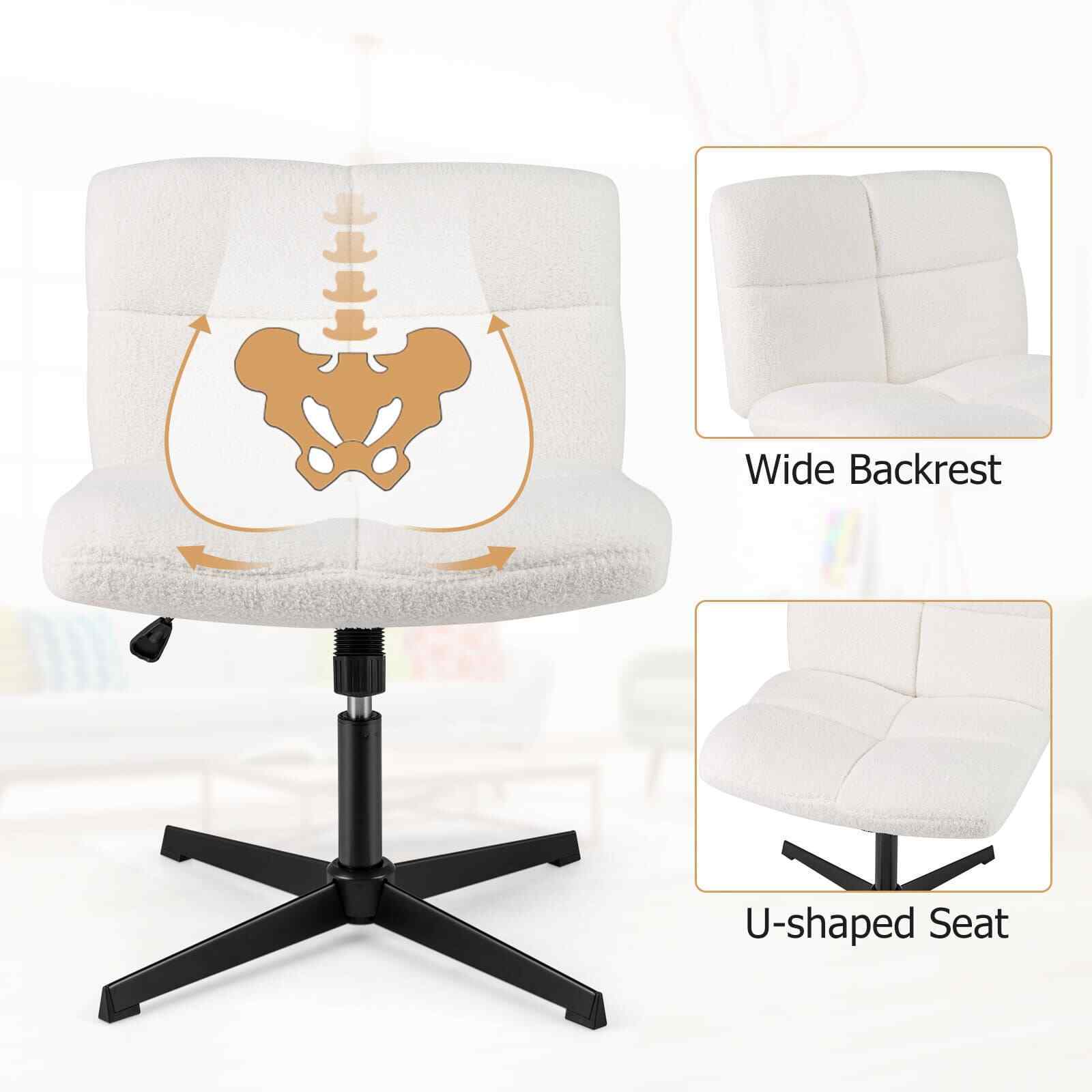 Armless Office Desk Cross Legged Office Chair w/Adjustable Height & 360°Rotation