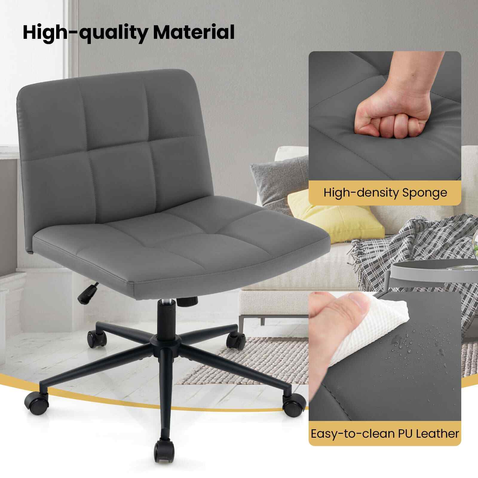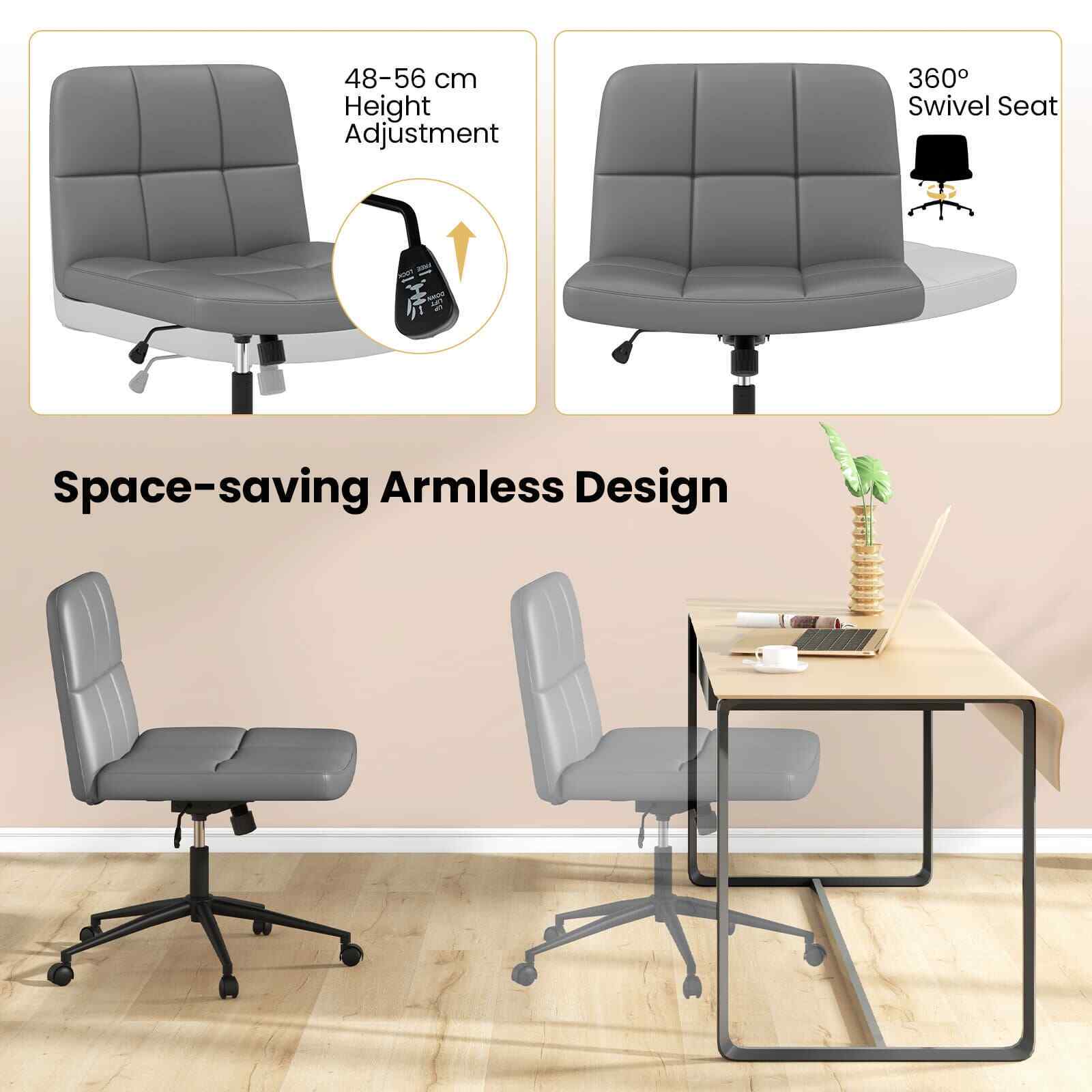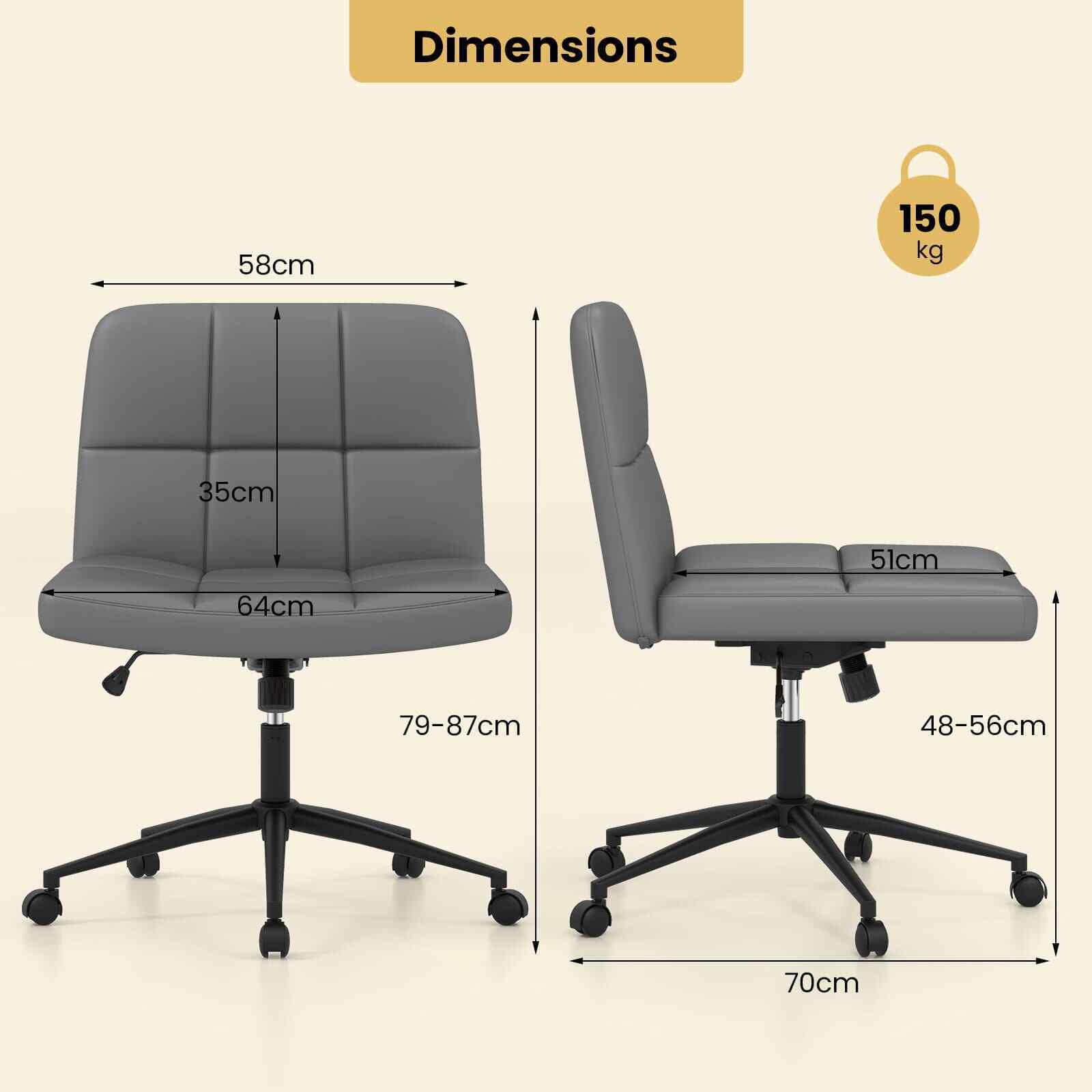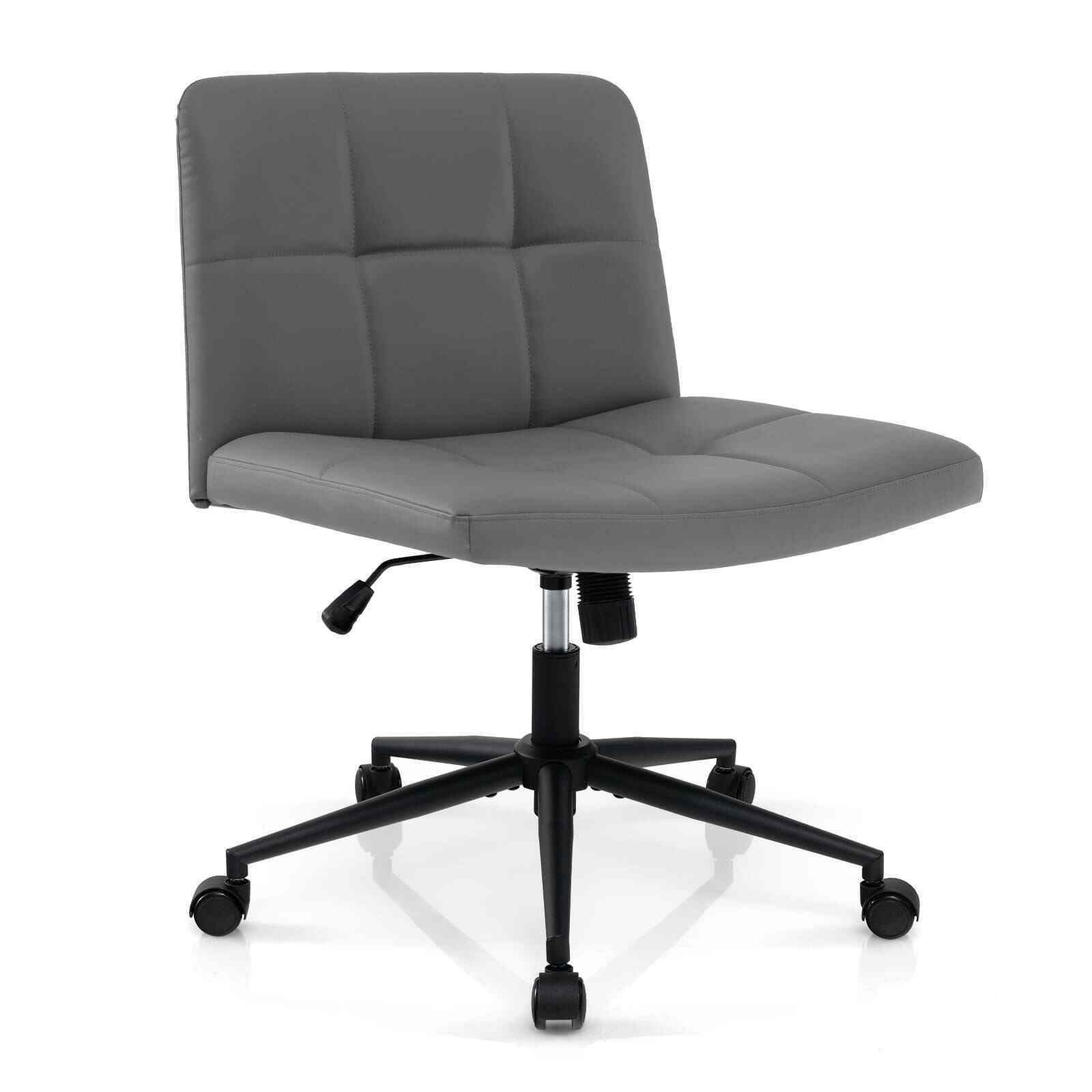Armless Swivel Task Chair Vanity Chair Cross Legged Office Chair-Grey