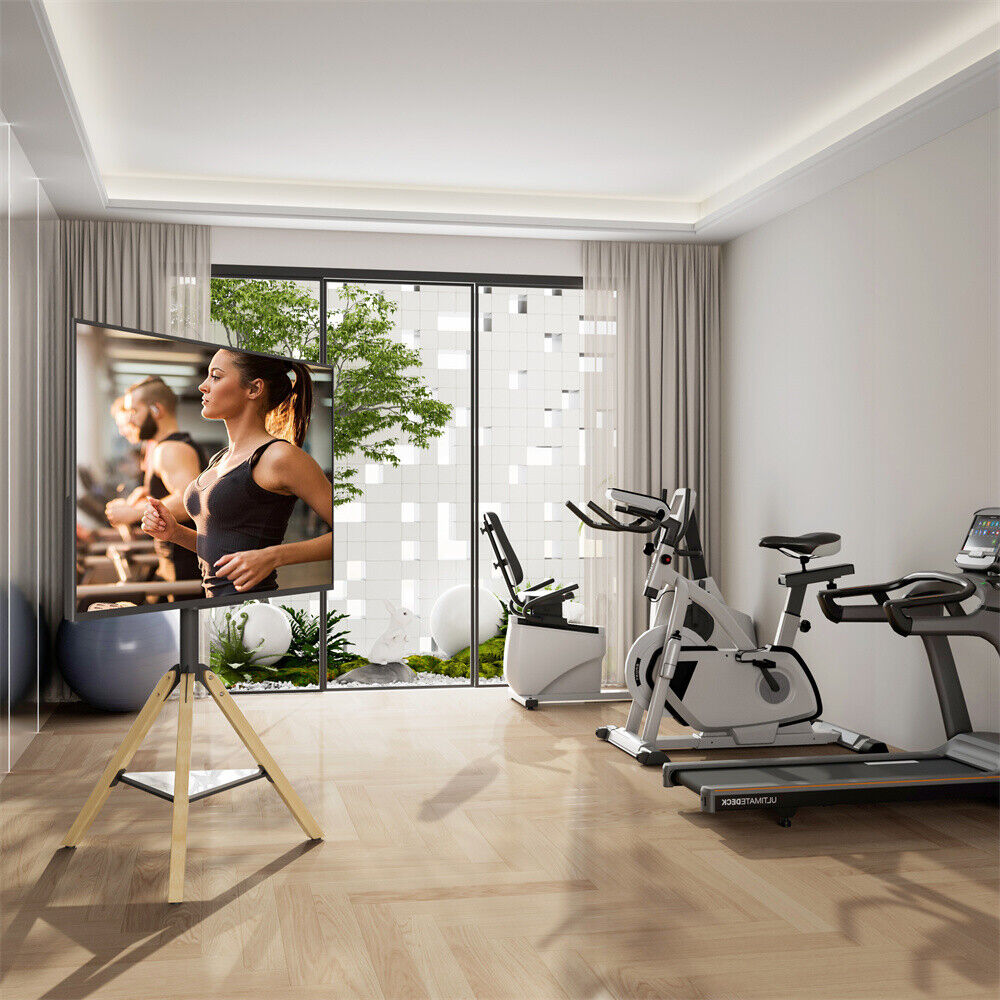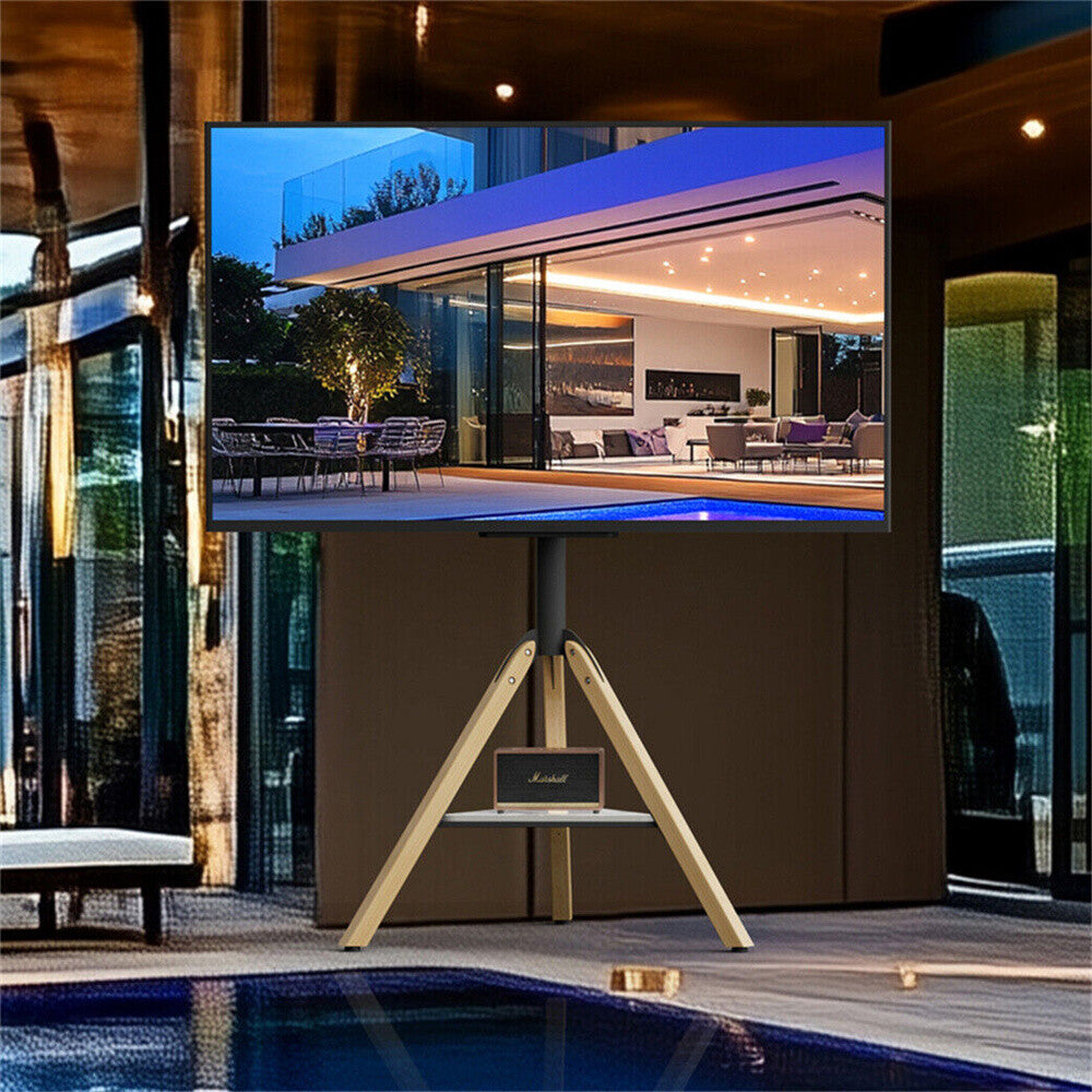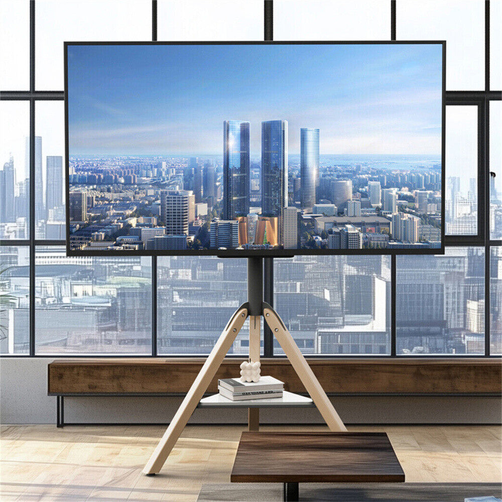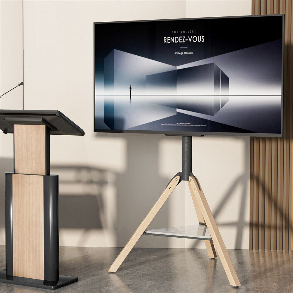 Art Easel TV Floor Stand TV for 40-75" Tripod TV Stand Wood Leg with Media Stand