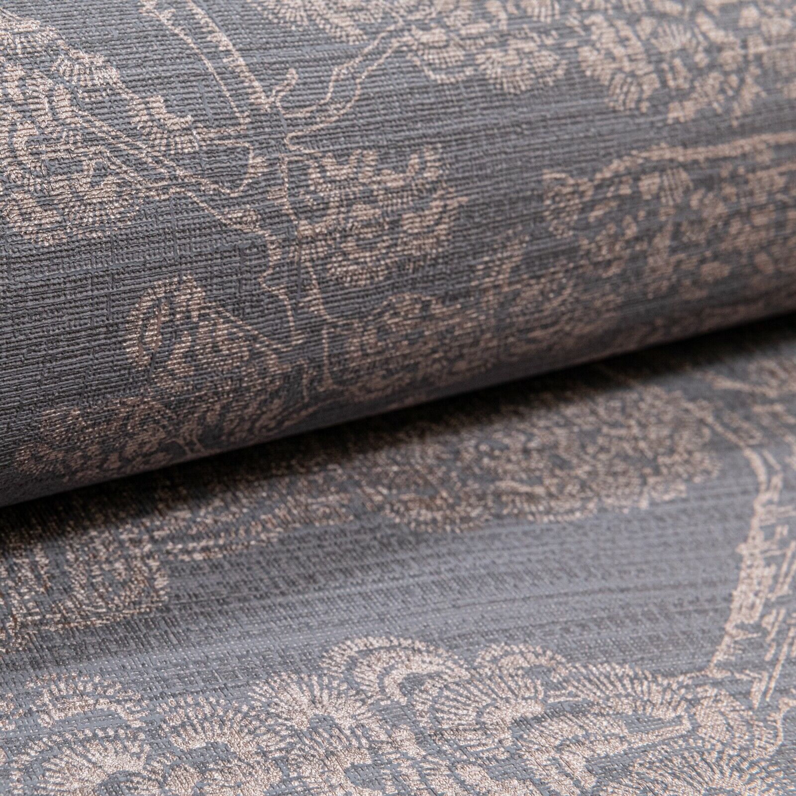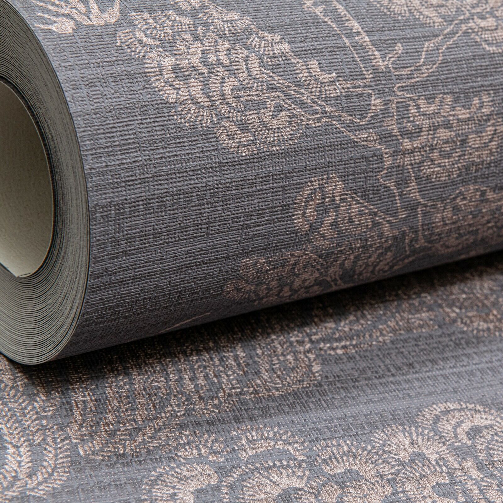 Arthouse Orient Forest Charcoal Grey Rose Gold Textured Vinyl Wallpaper 298003