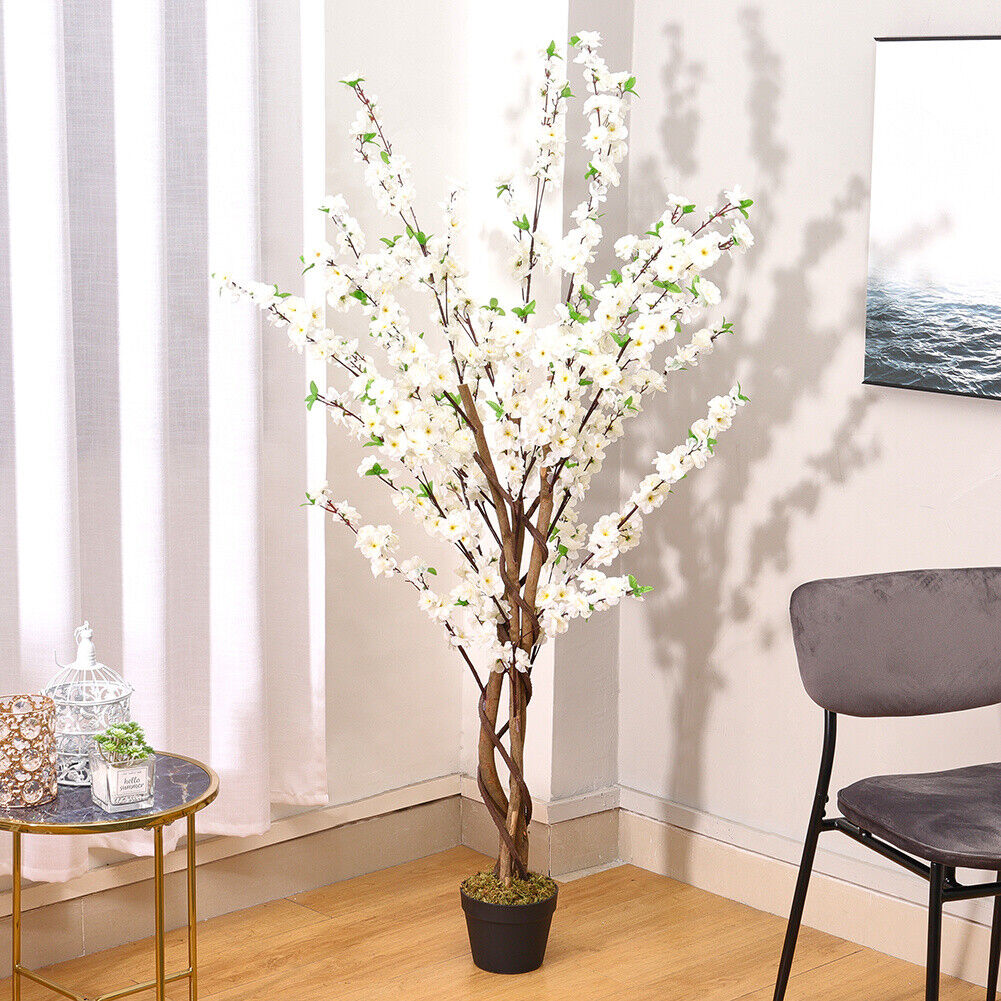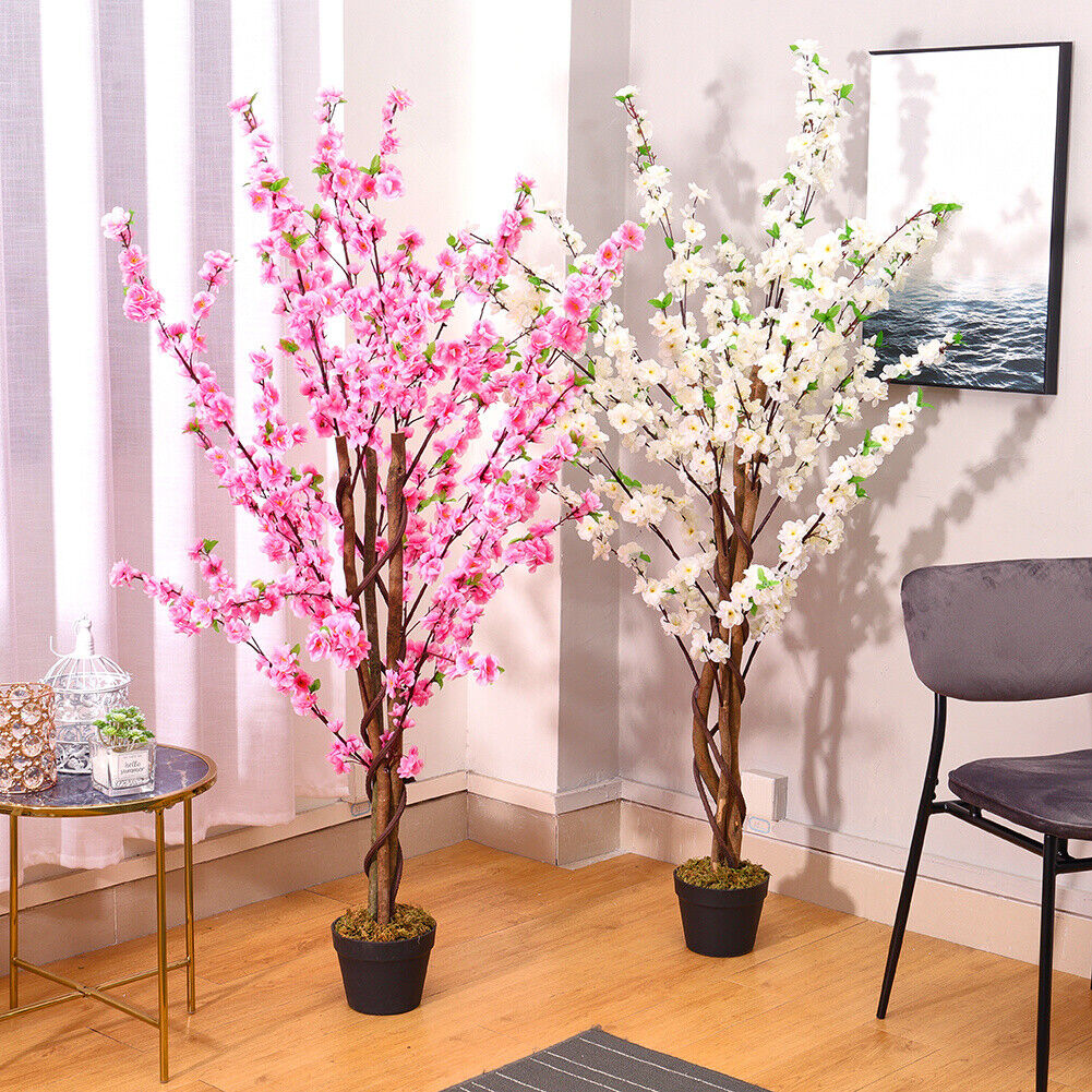 Artificial Blossom Flowers Tree Potted Plant Realistic Cherry Blossoming Decors