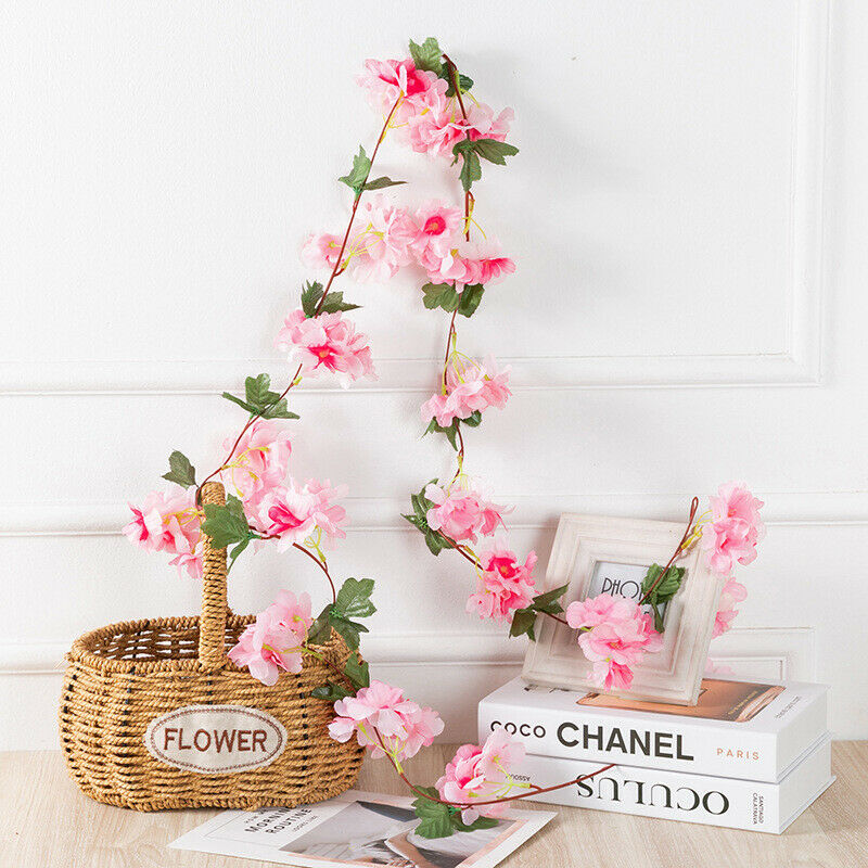 Artificial cherry flowers fake blossoms flower garland ivy hanging vine decor