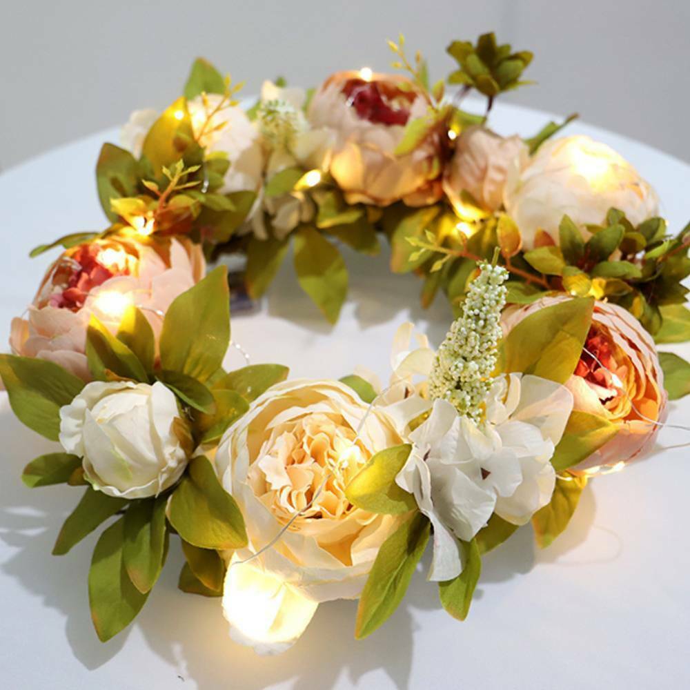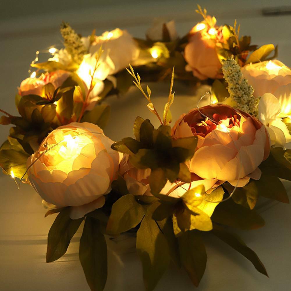 Artificial Door Wreath Hanging Rose Peony Flower Garland Fake Plant Home Decor