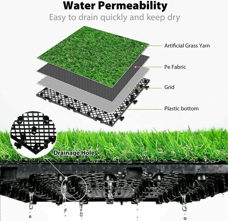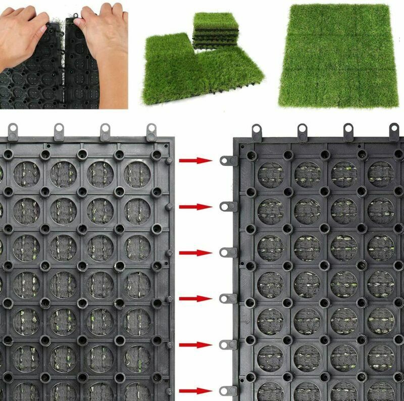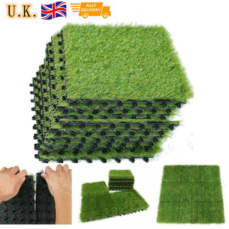 Artificial Grass Lawn Interlocking Patio Deck Tiles Fake Decking Garden Balcony
