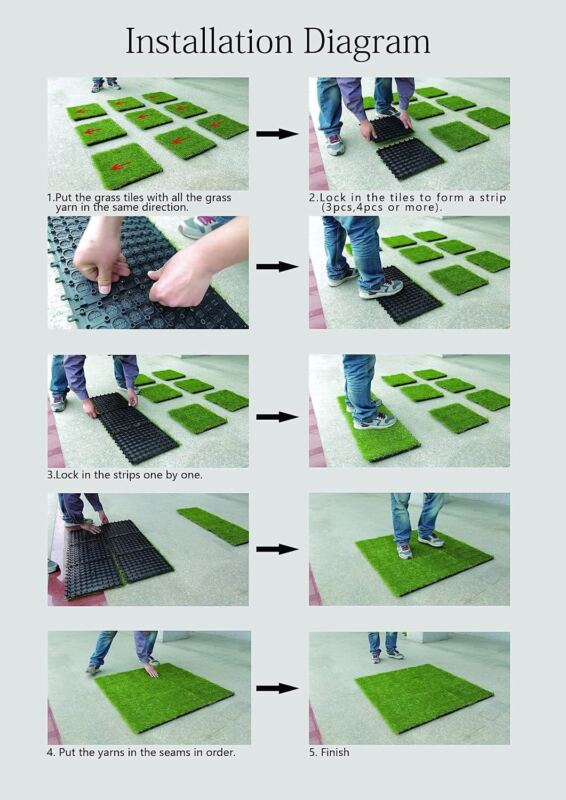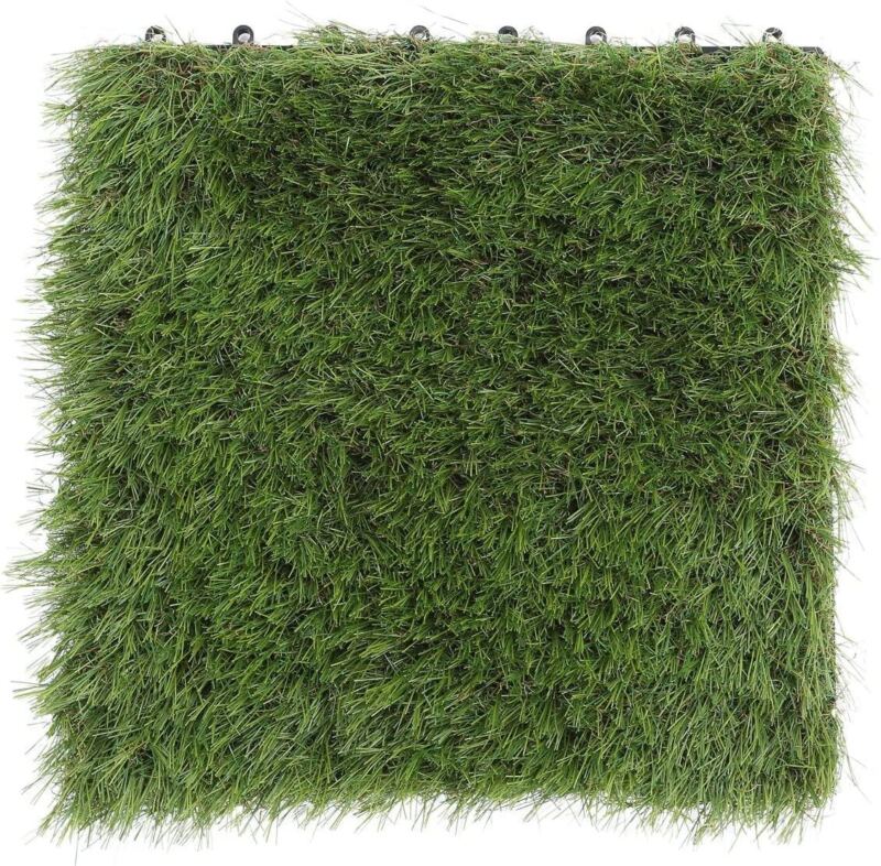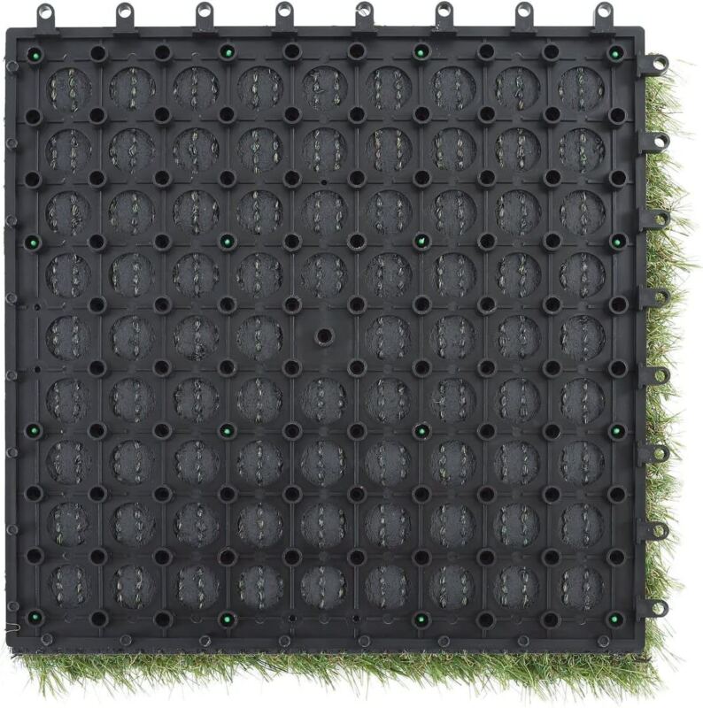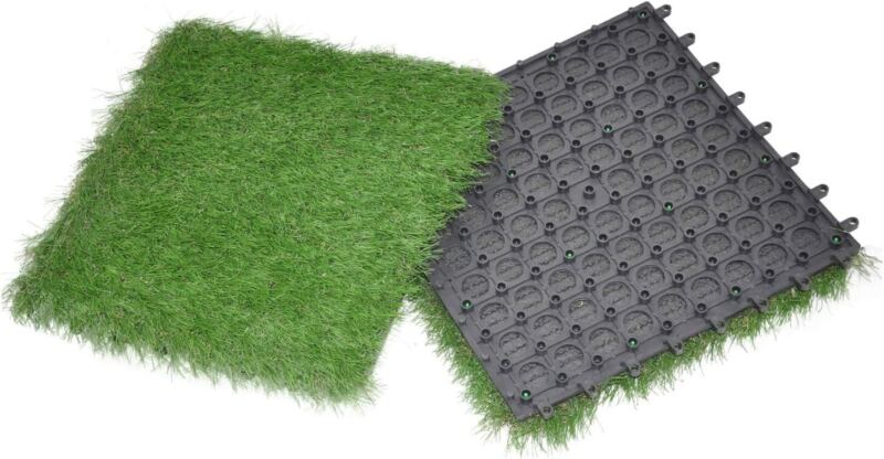 Artificial Grass Turf Interlocking Tile Squares,18 Tiles Pack Fake Lawn Decking