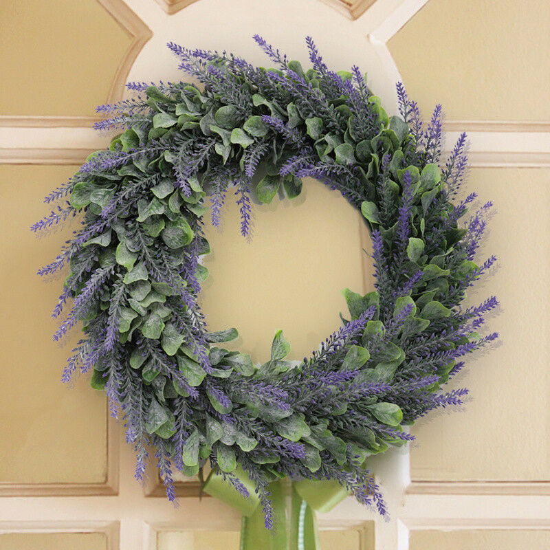 Artificial Lavender Flower Wreath Door Hanging Garland Wedding Home Spring Decor