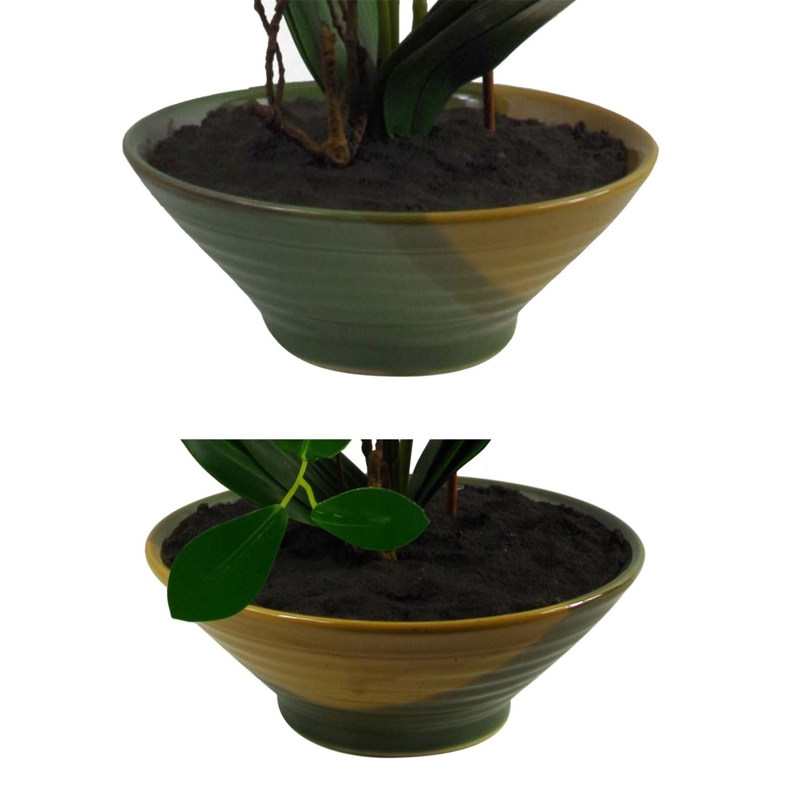 Artificial Orchid Glazed Planter Light Pink Green Glazed Planter 65cm
