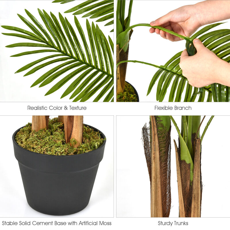 Artificial Palm Tree Fake Decorative Plants with Plastic Pot Non Toxic Material
