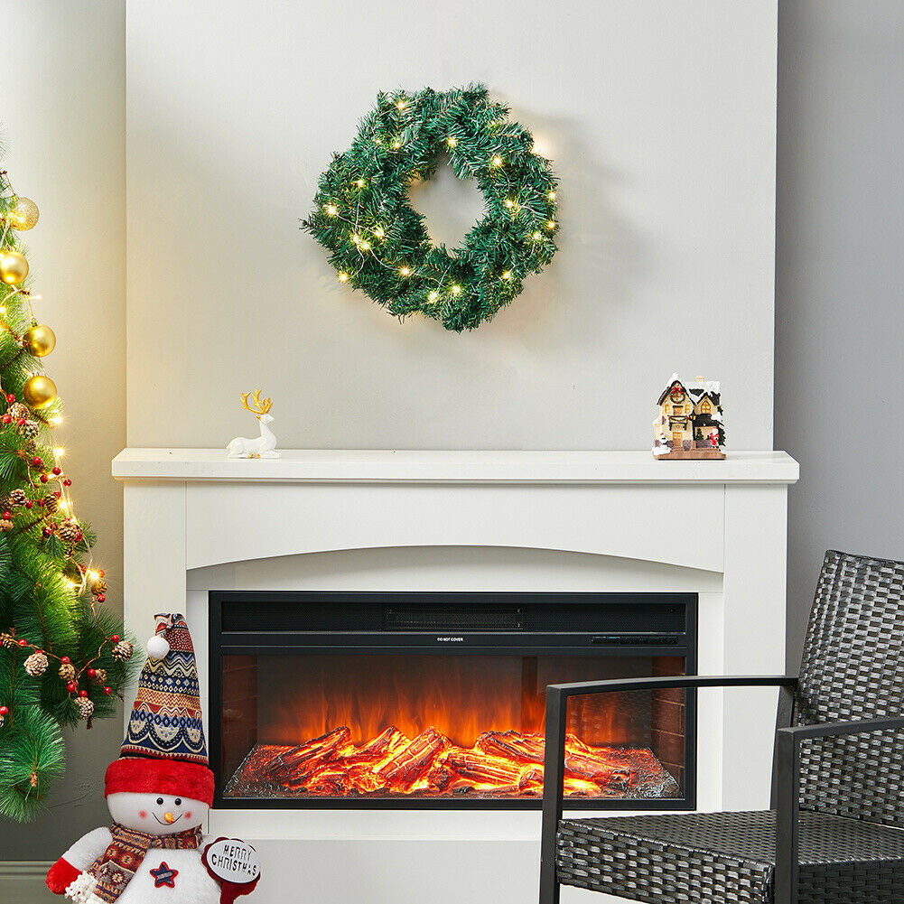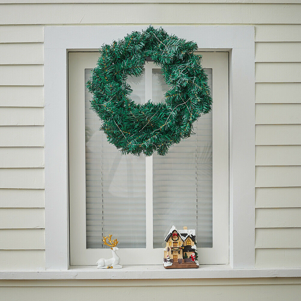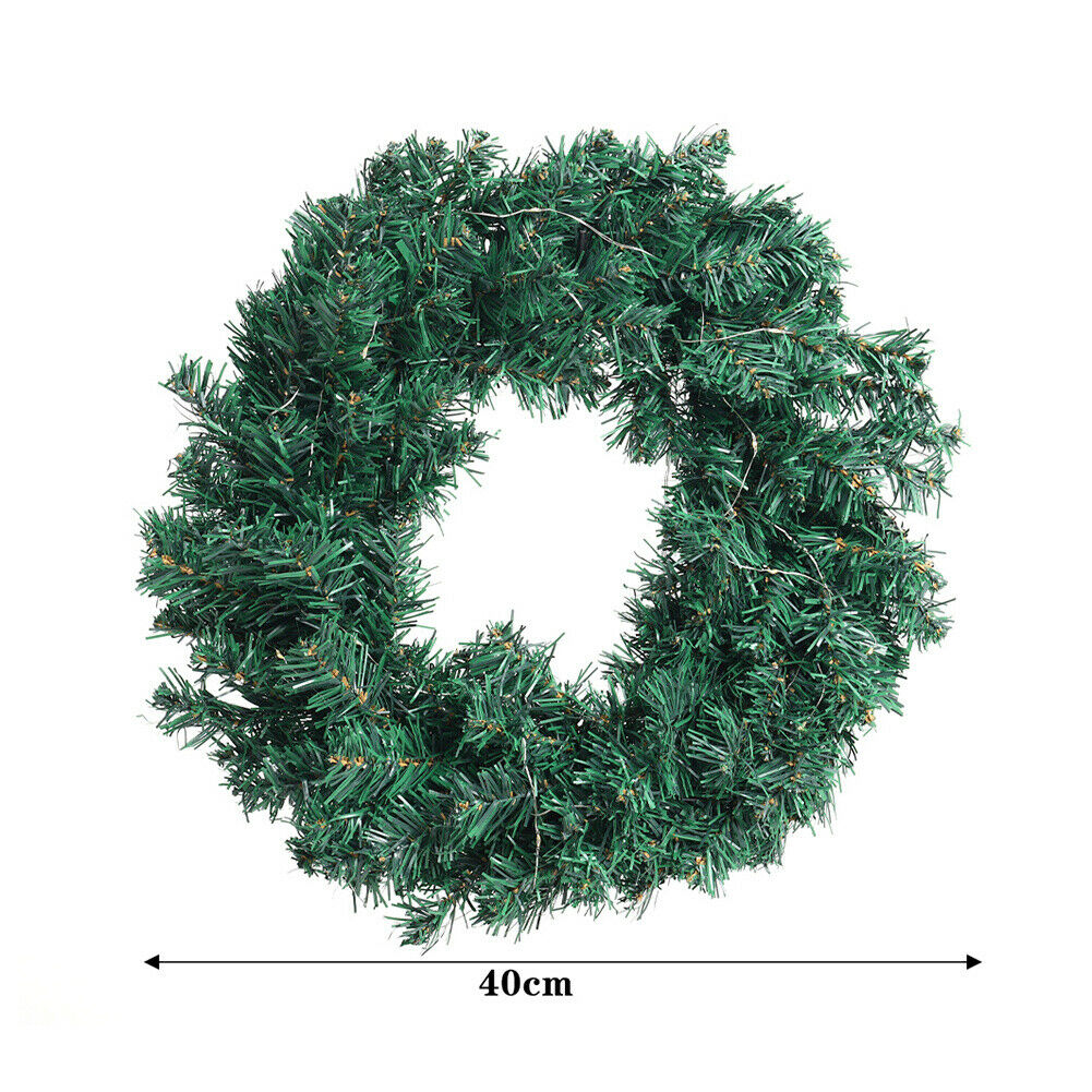 Artificial Plain Pine Christmas Wreath LED Light Door Fireplace Hanging Decor