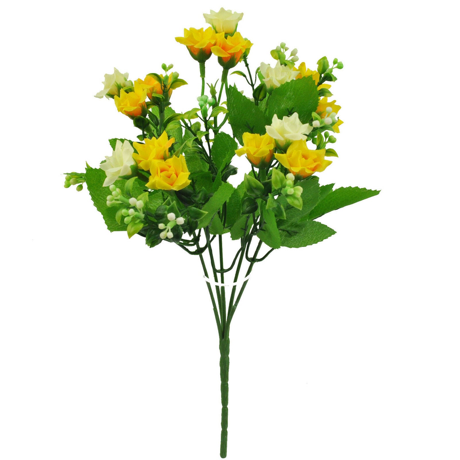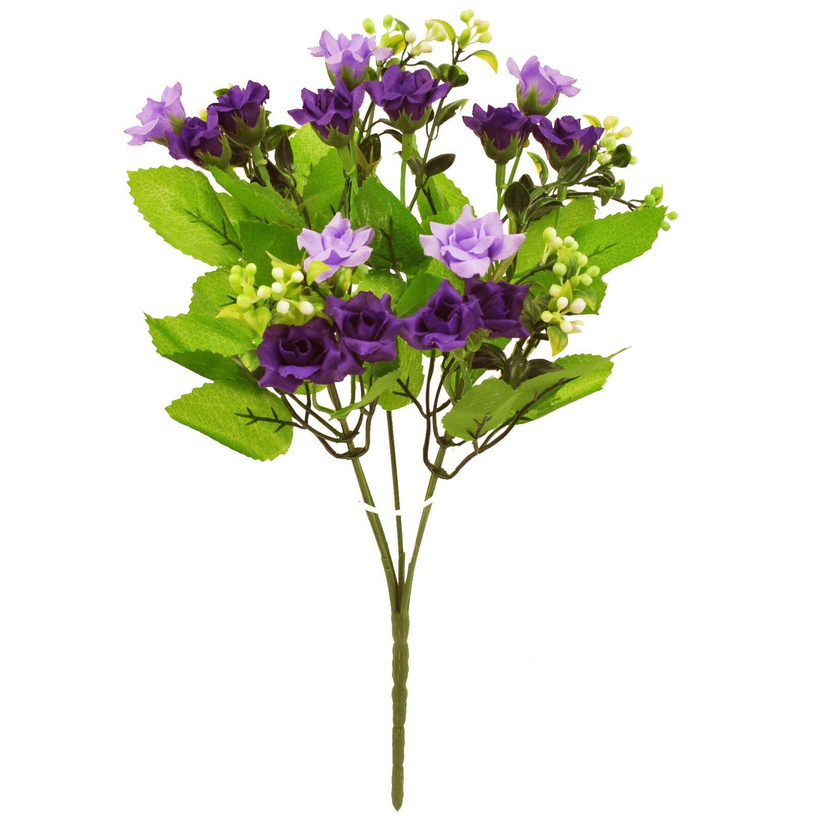 ARTIFICIAL SILK FLOWERS MINI ROSE BUNCH 4 COLOURS Wedding Home Grave Outdoor