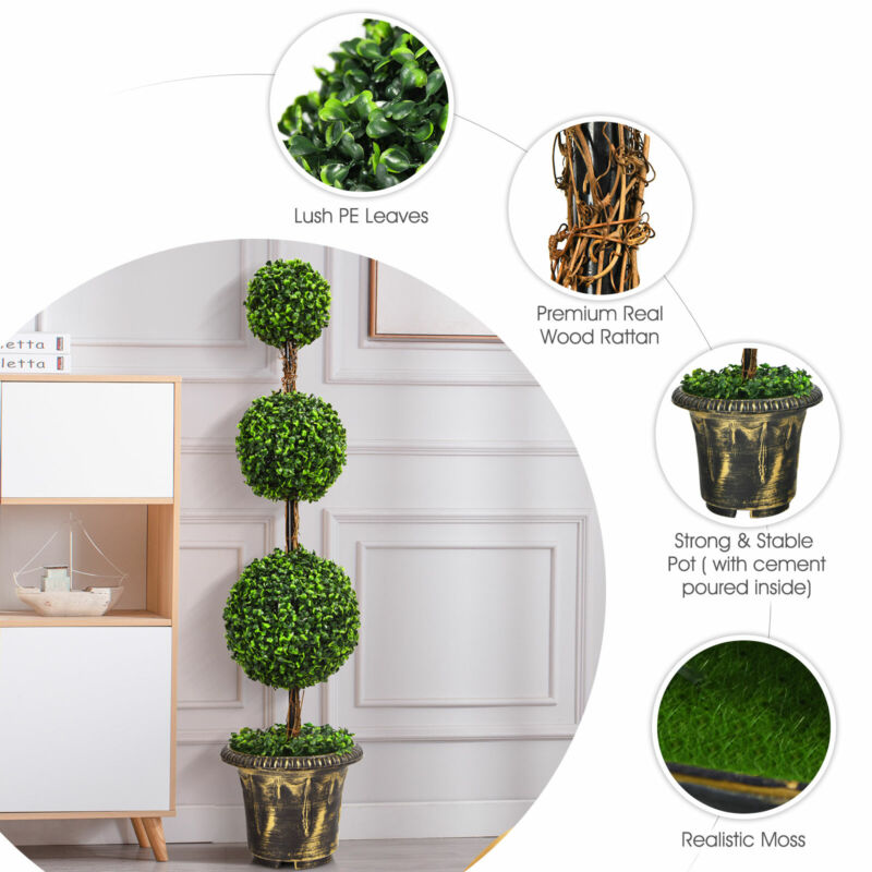 Artificial Triple Ball Shaped Topiary Tree Doorway Porch Garden Decoration Plant