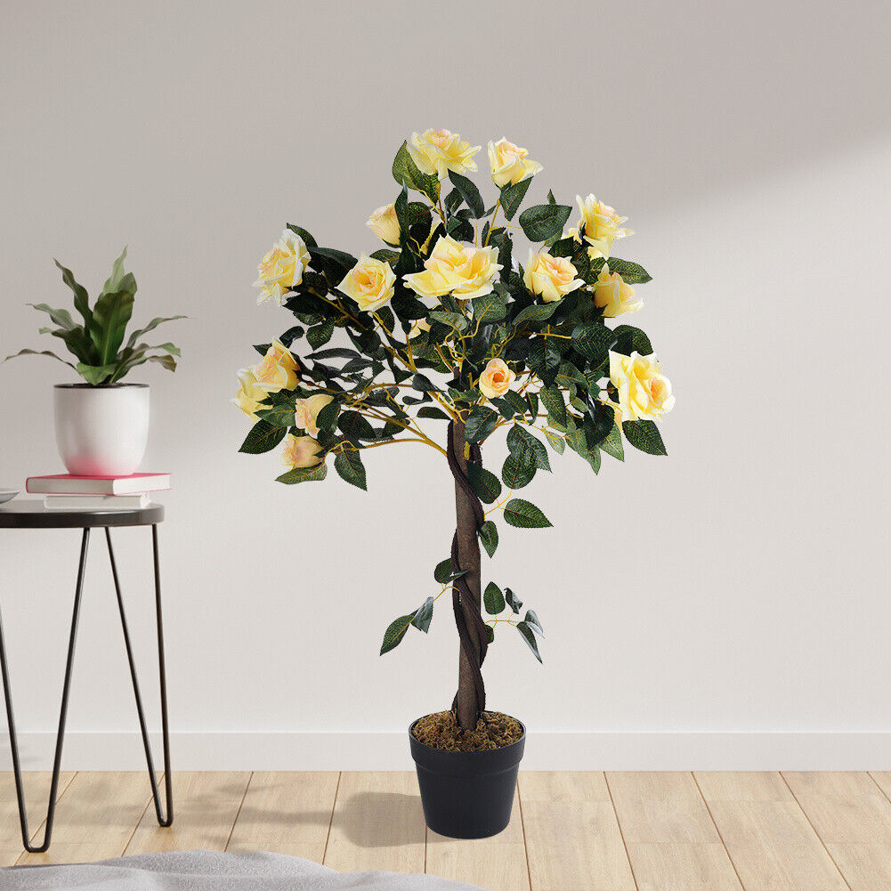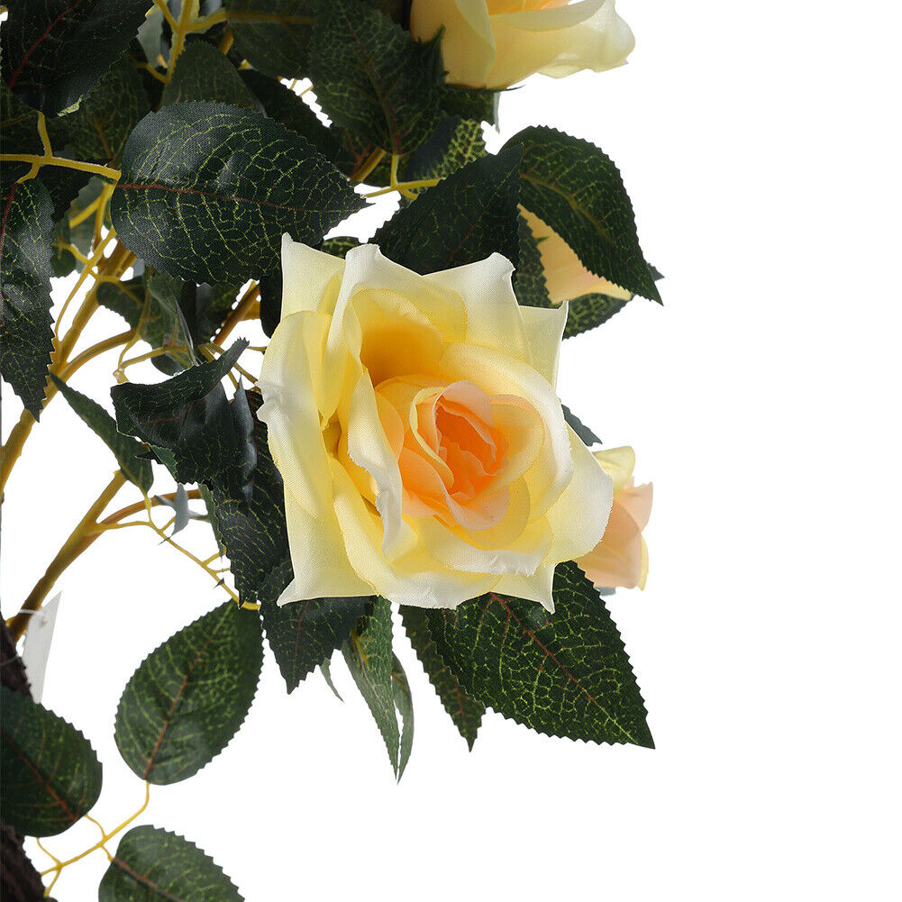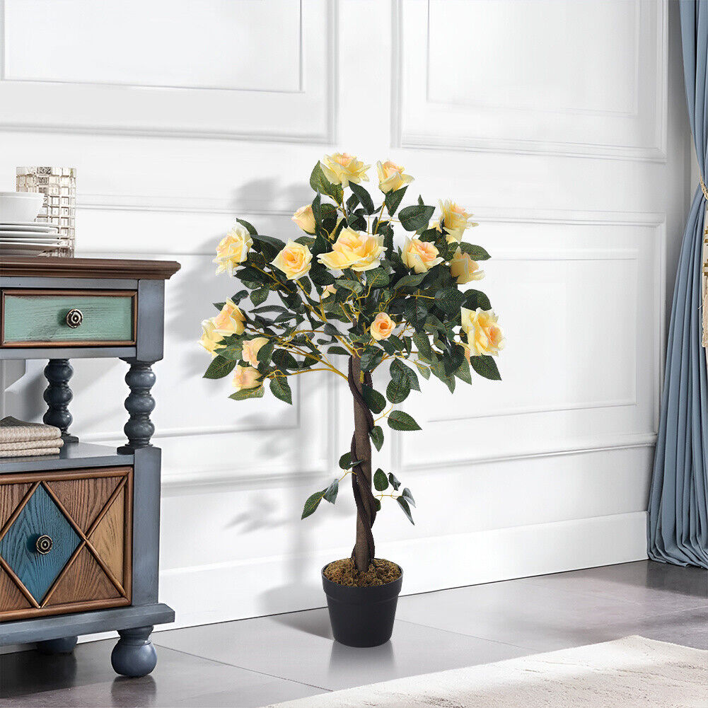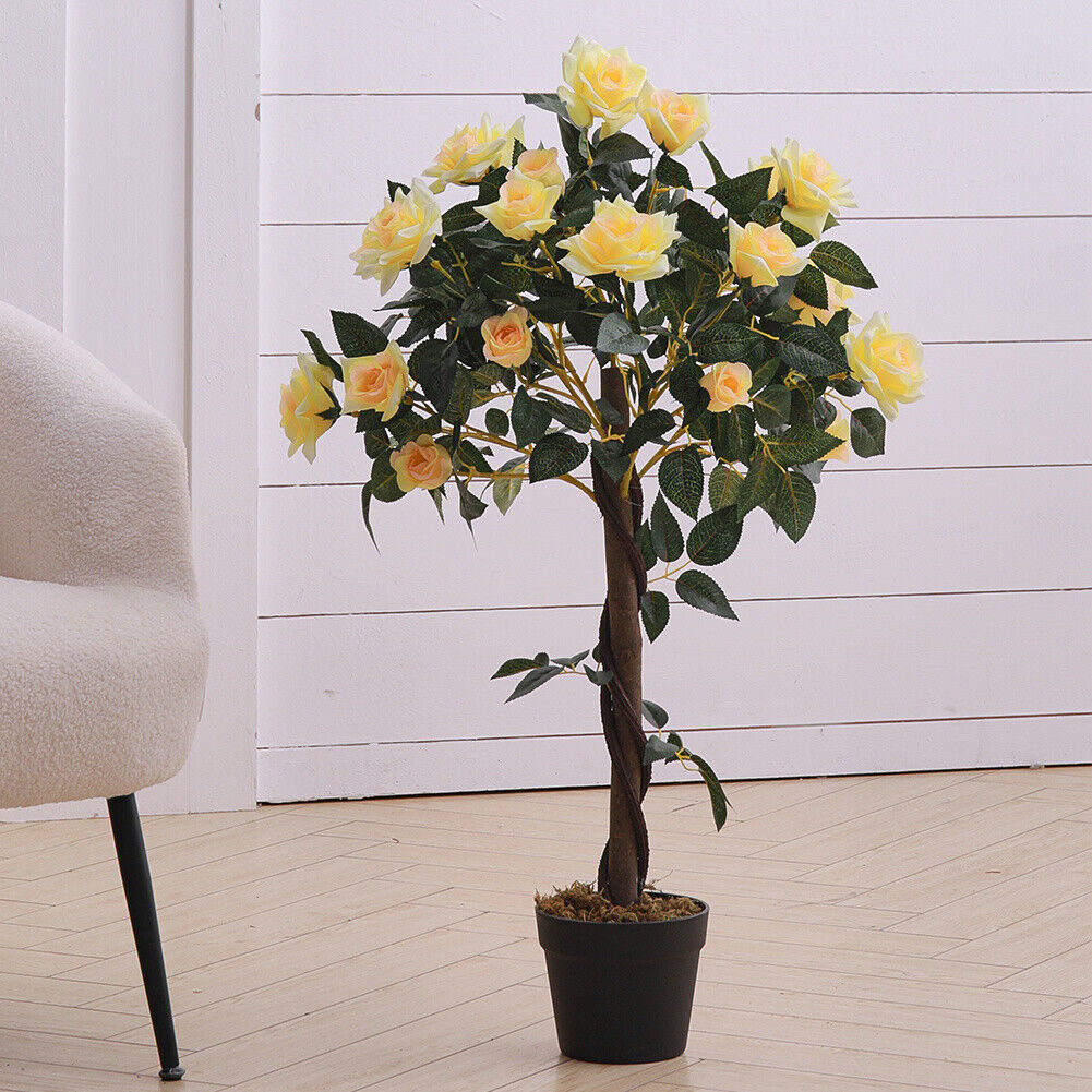 Artificial Yellow Rose Tree in Pot Fake Flower Plant Outdoor Home Office Decor