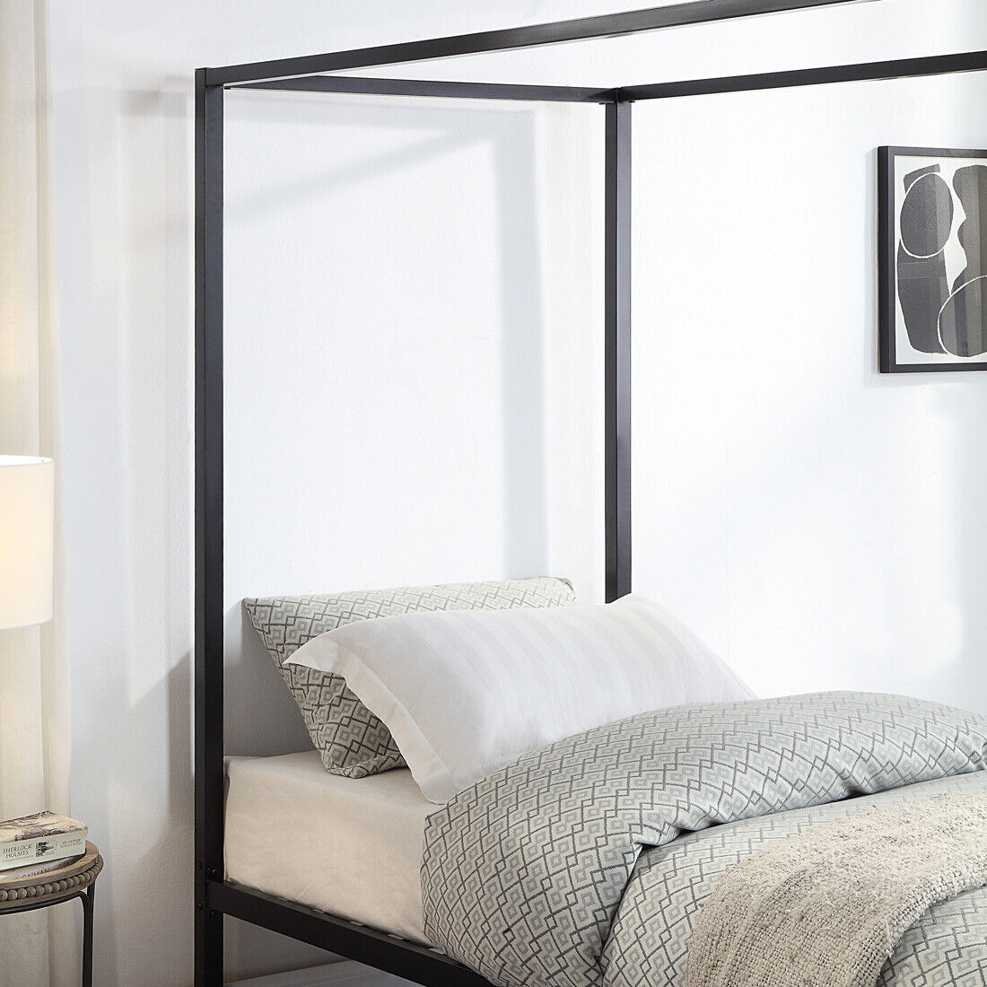 ASHWELL 4 POSTER METAL BED FRAME BLACK/WHITE - SINGLE/SMALL DOUBLE/DOUBLE/KING
