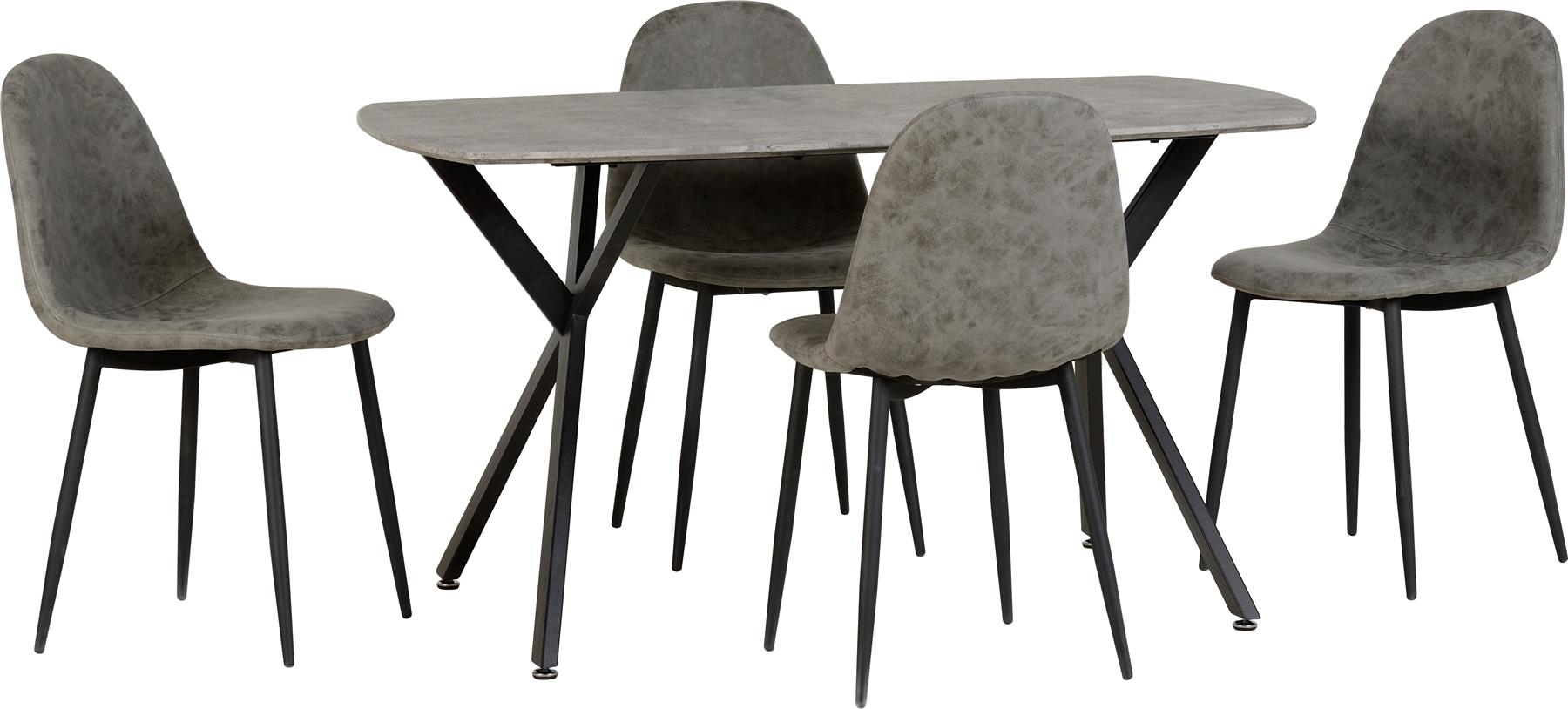 ATHENS DINING SET & 4 FAUX LEATHER DINING TABLE CHAIRS CONCRETE EFFECT TOP