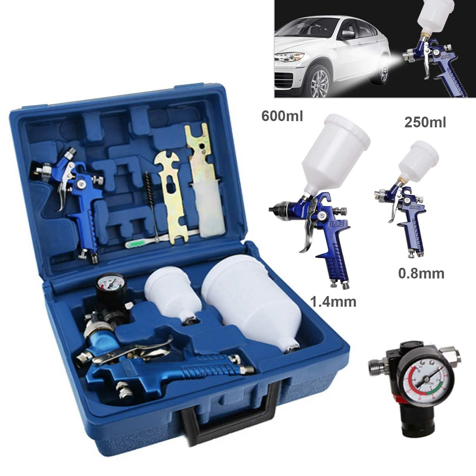 Auto Paint HVLP Air Spray Gun Kit Gravity Feed Car Primer 0.8/1.4mm Nozzle + Box