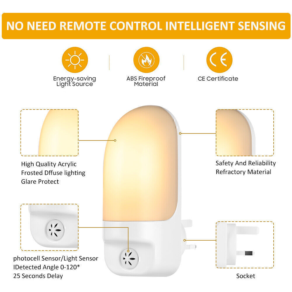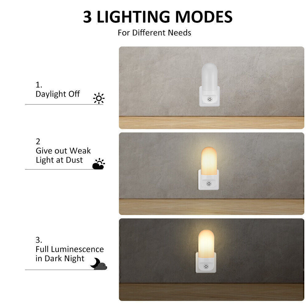 Automatic LED Night Light Plug in Energy Saving Dusk Dawn Sensor Kids Warm Light